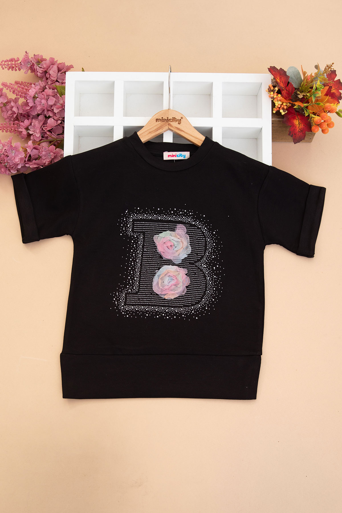Kız Çocuk B Harf Taş Baskılı Tişört - 2020 (8-14 Yaş)