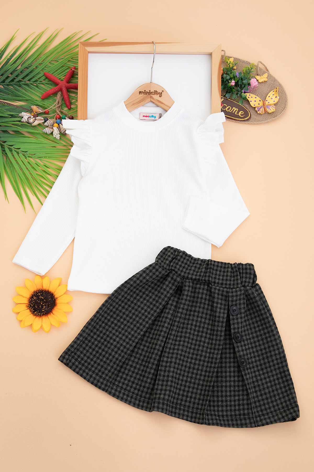 Kız Çocuk Badili Ekose Etekli Takım - 170980 (2-11 Yaş)