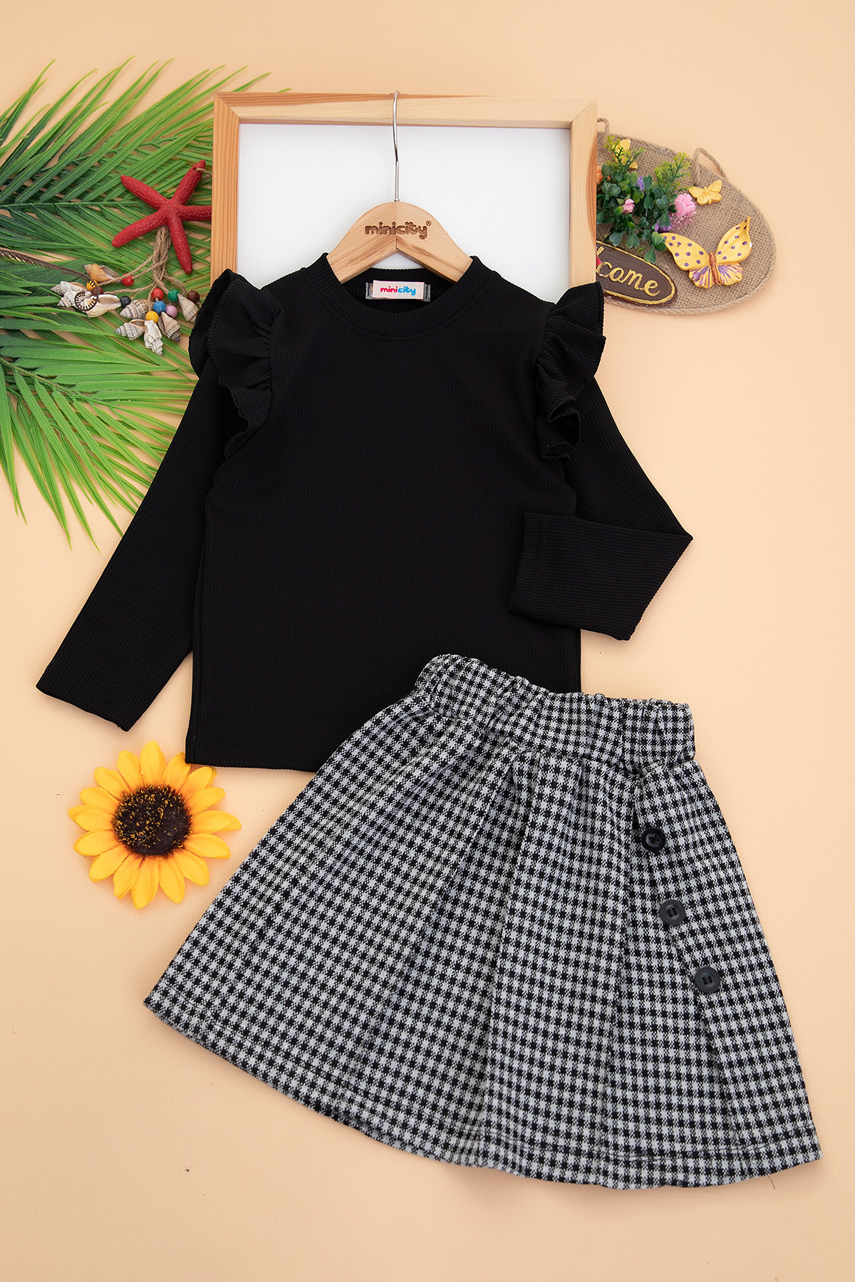 Kız Çocuk Badili Ekose Etekli Takım - 170980 (2-11 Yaş)