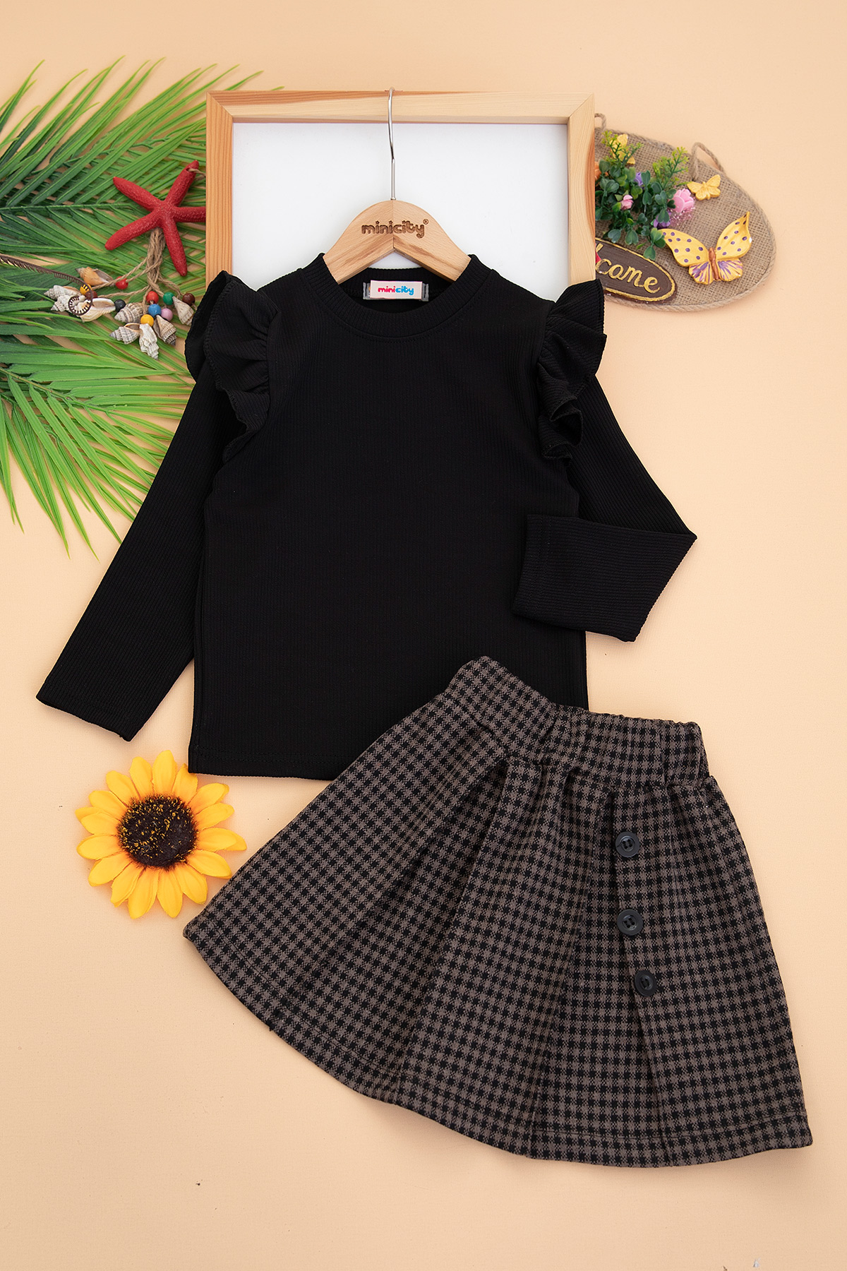 Kız Çocuk Badili Ekose Etekli Takım - 170980 (2-11 Yaş)
