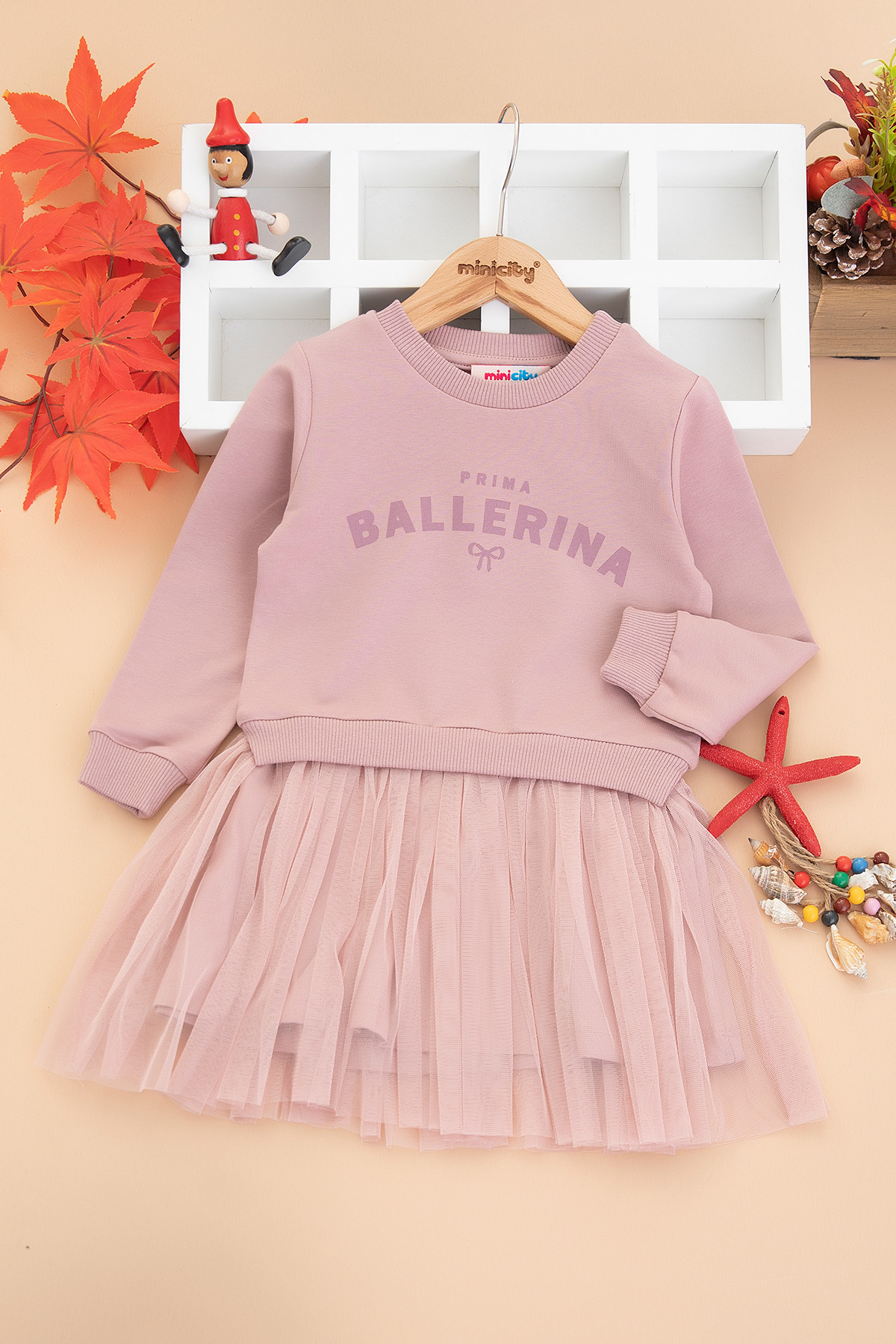 Kız Çocuk Balerina Baskılı Elbise - 7779 (3-7 Yaş)