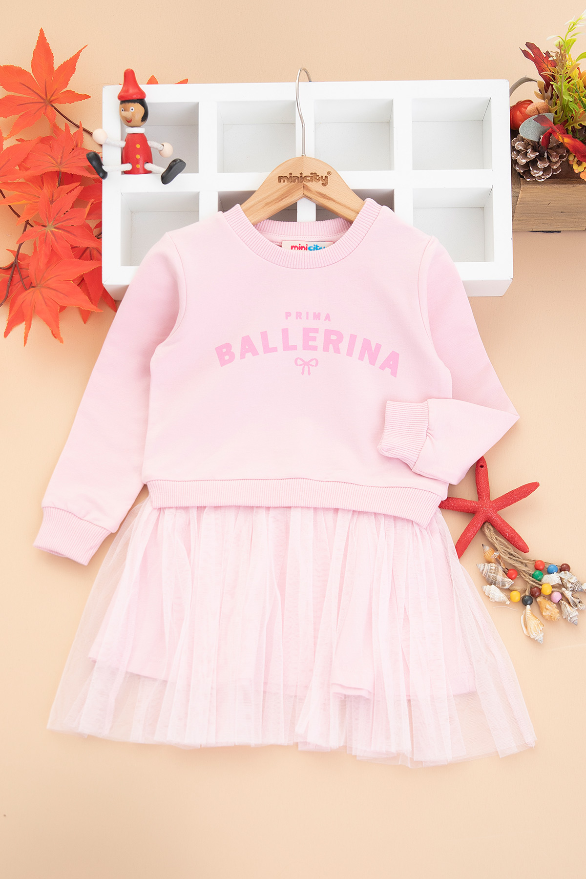 Kız Çocuk Balerina Baskılı Elbise - 7779 (3-7 Yaş)