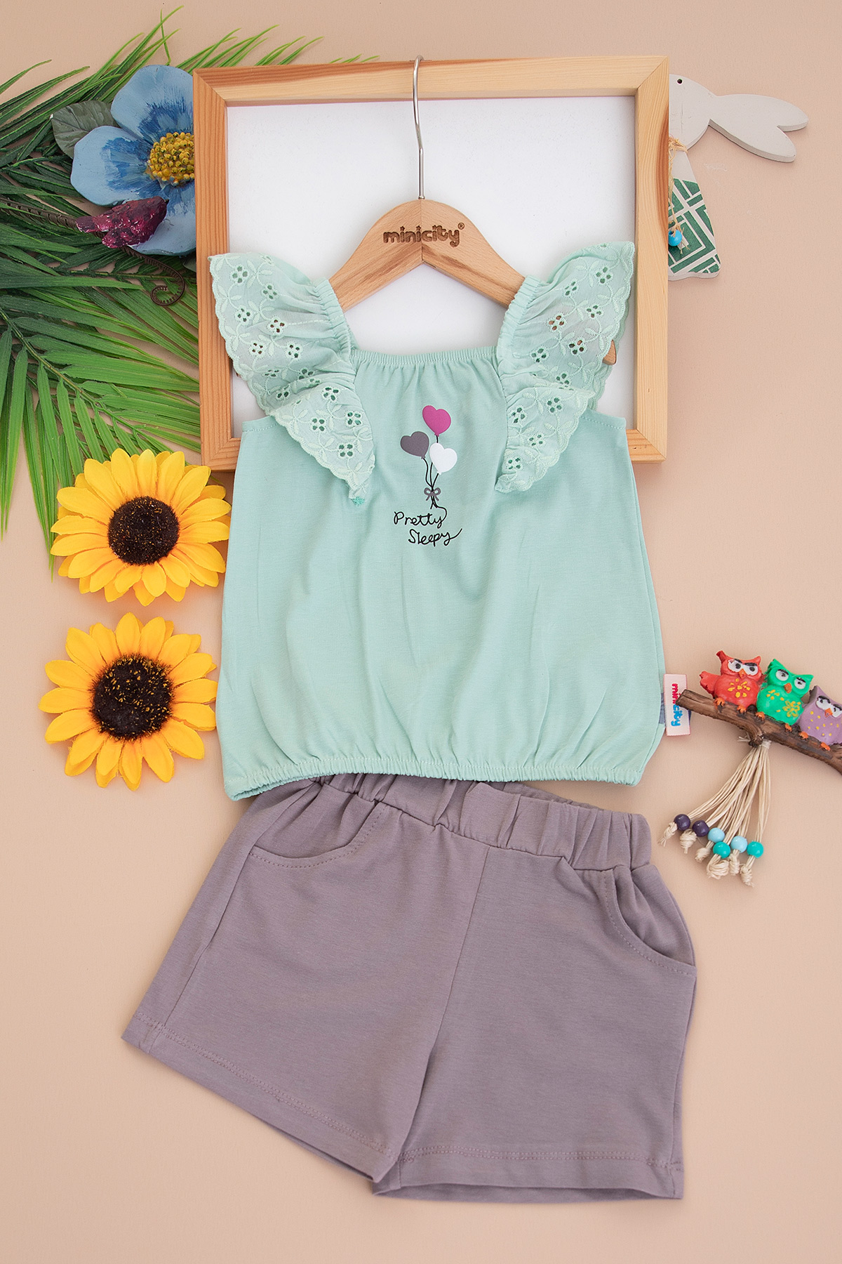Kız Çocuk Balon Baskılı Şortlu Takım - 24316 (3-6 Yaş)