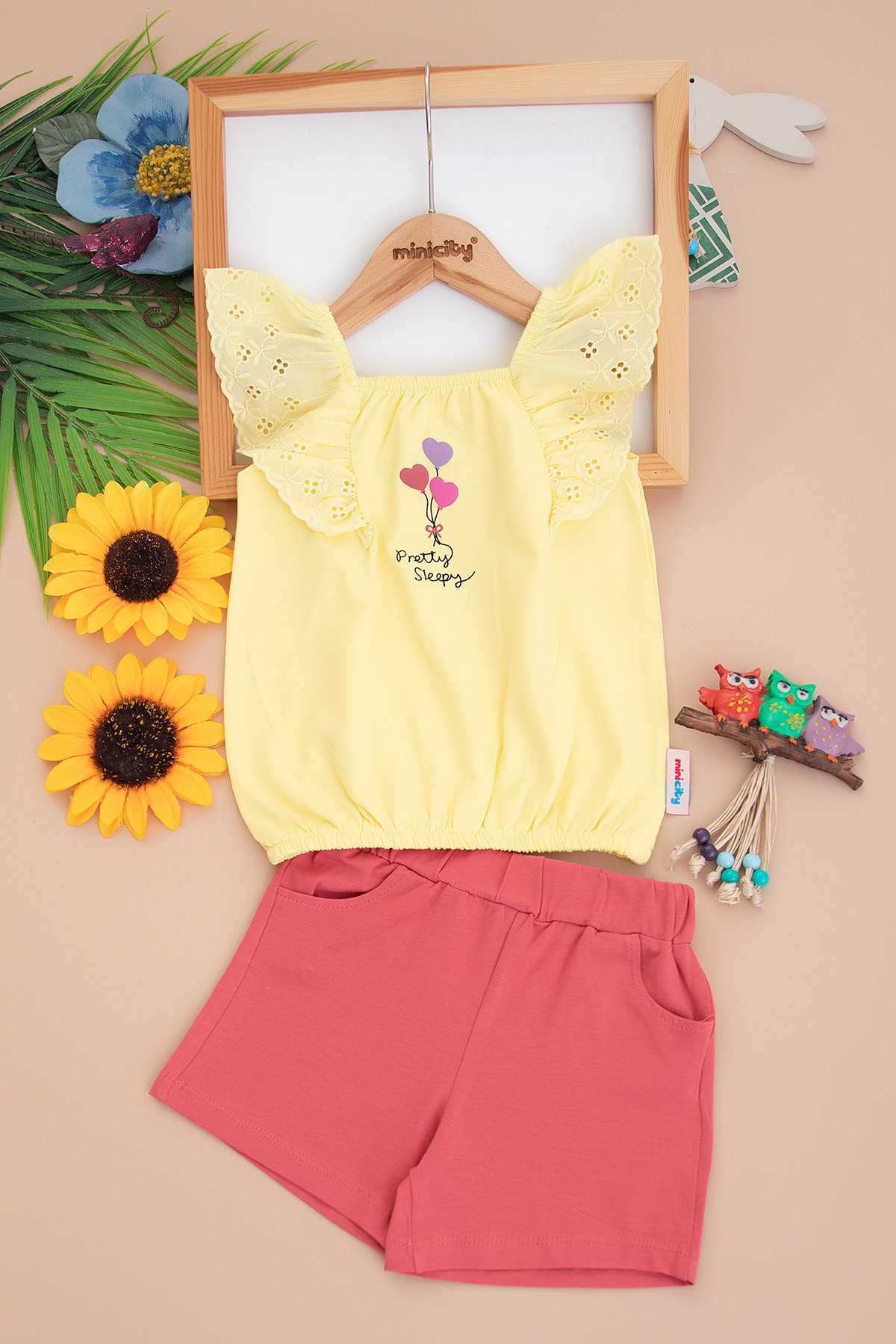 Kız Çocuk Balon Baskılı Şortlu Takım - 24316 (3-6 Yaş)
