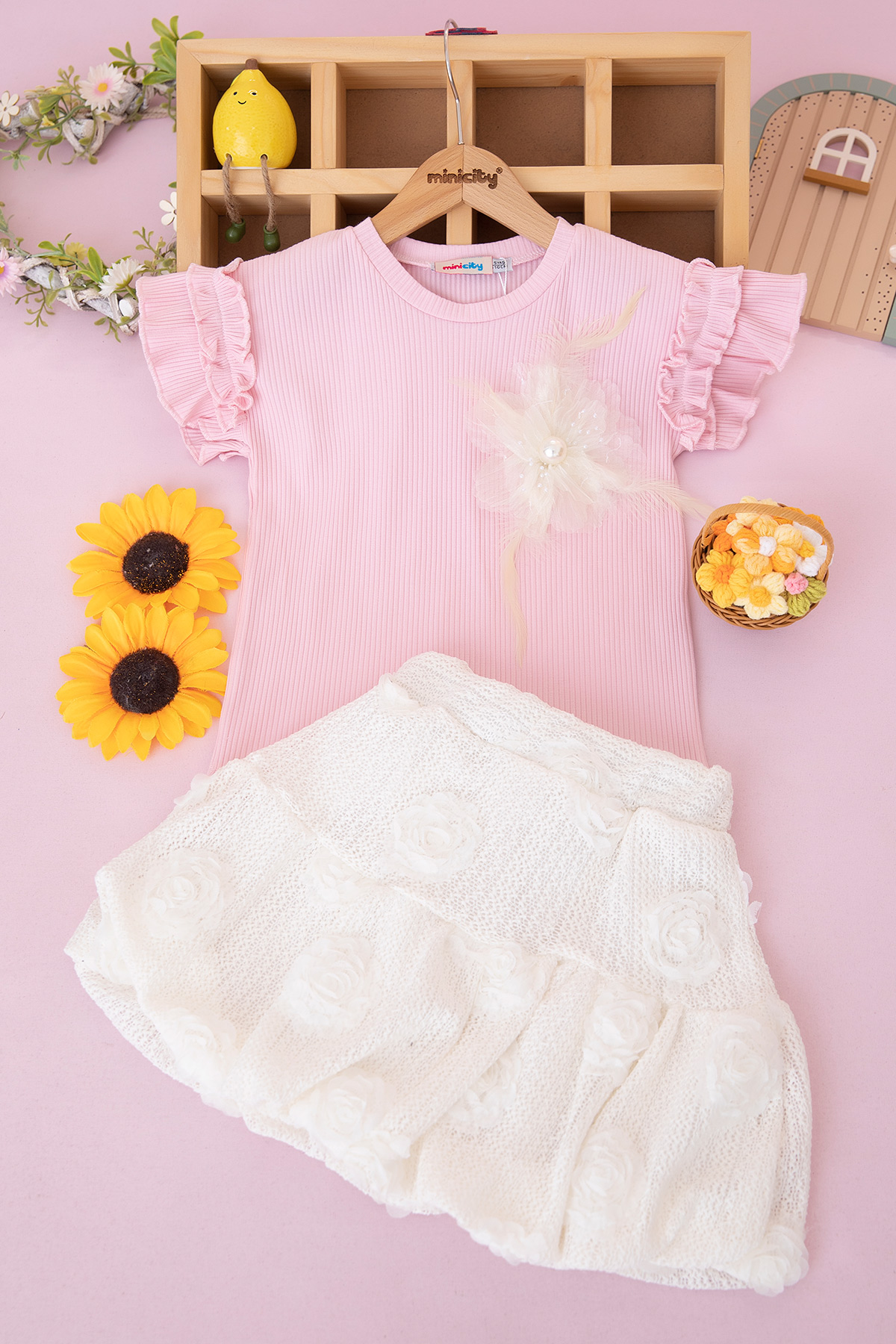 Kız Çocuk Balon Etekli Çiçekli Takım - 382 (5-8 Yaş)