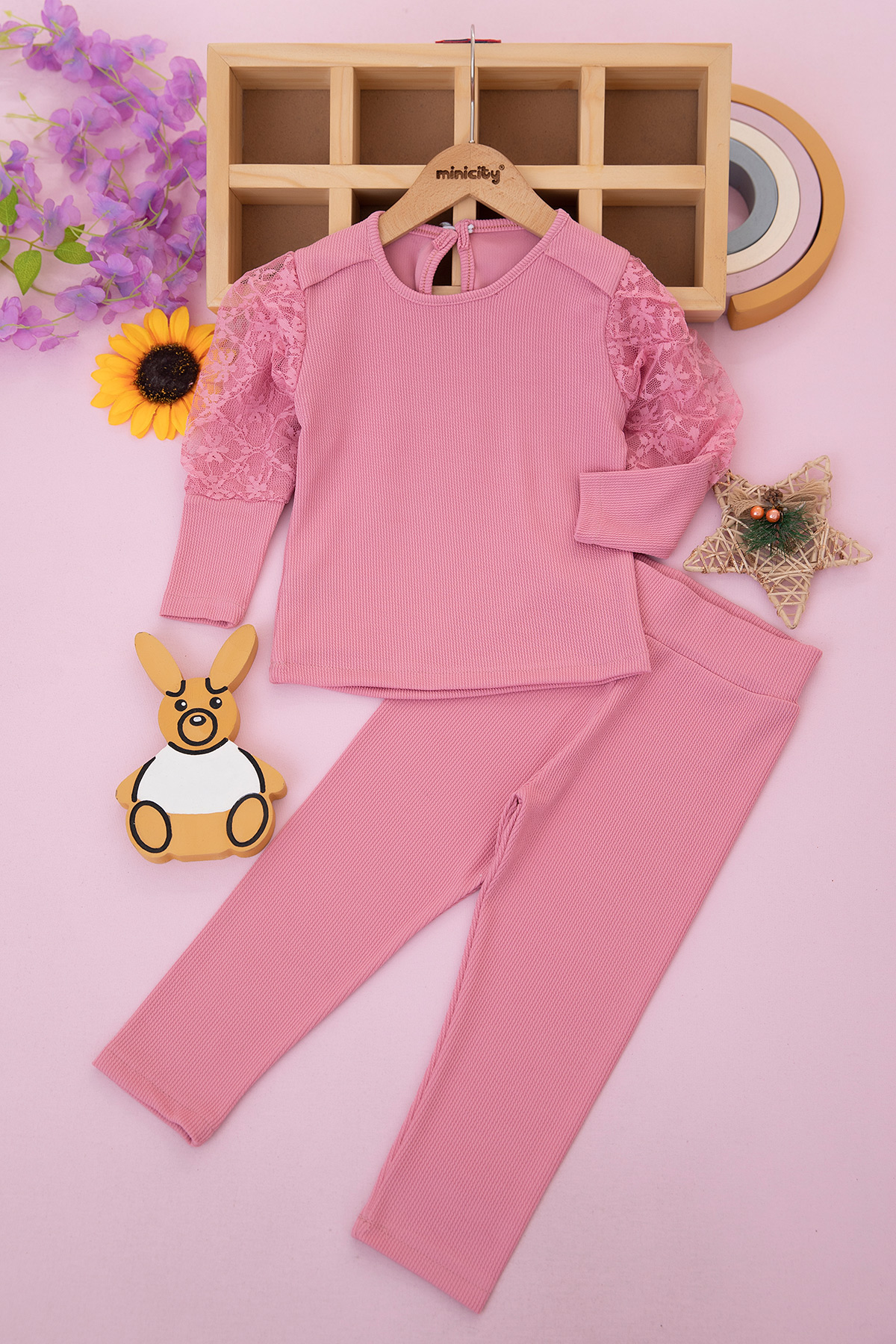 Kız Çocuk Balon Kol Dantelli Takım - 259 (3-6 Yaş)