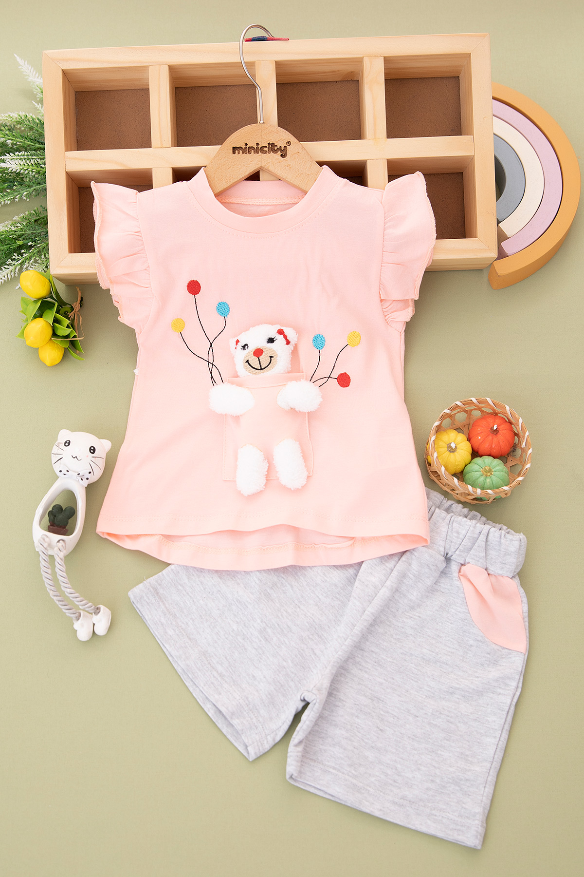 Kız Çocuk Balonlu Ayıcık Şortlu Takım - 2004 (1-3 Yaş)