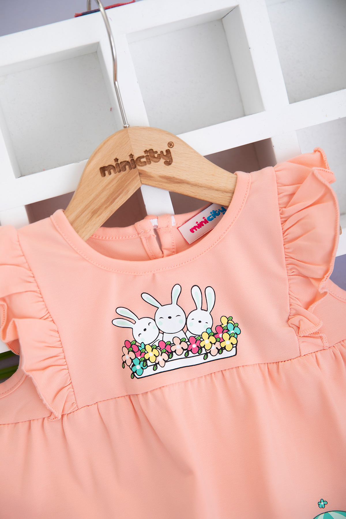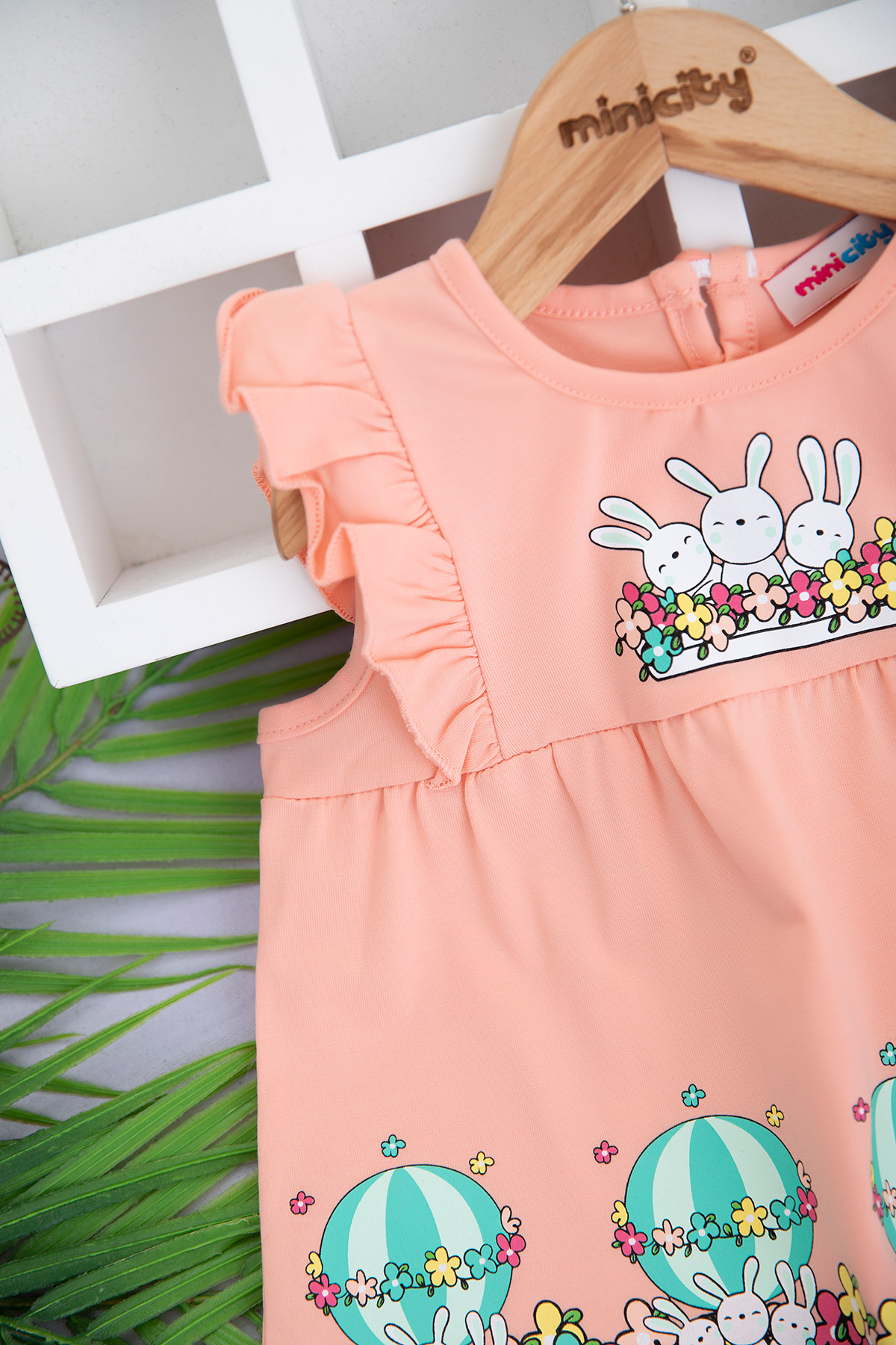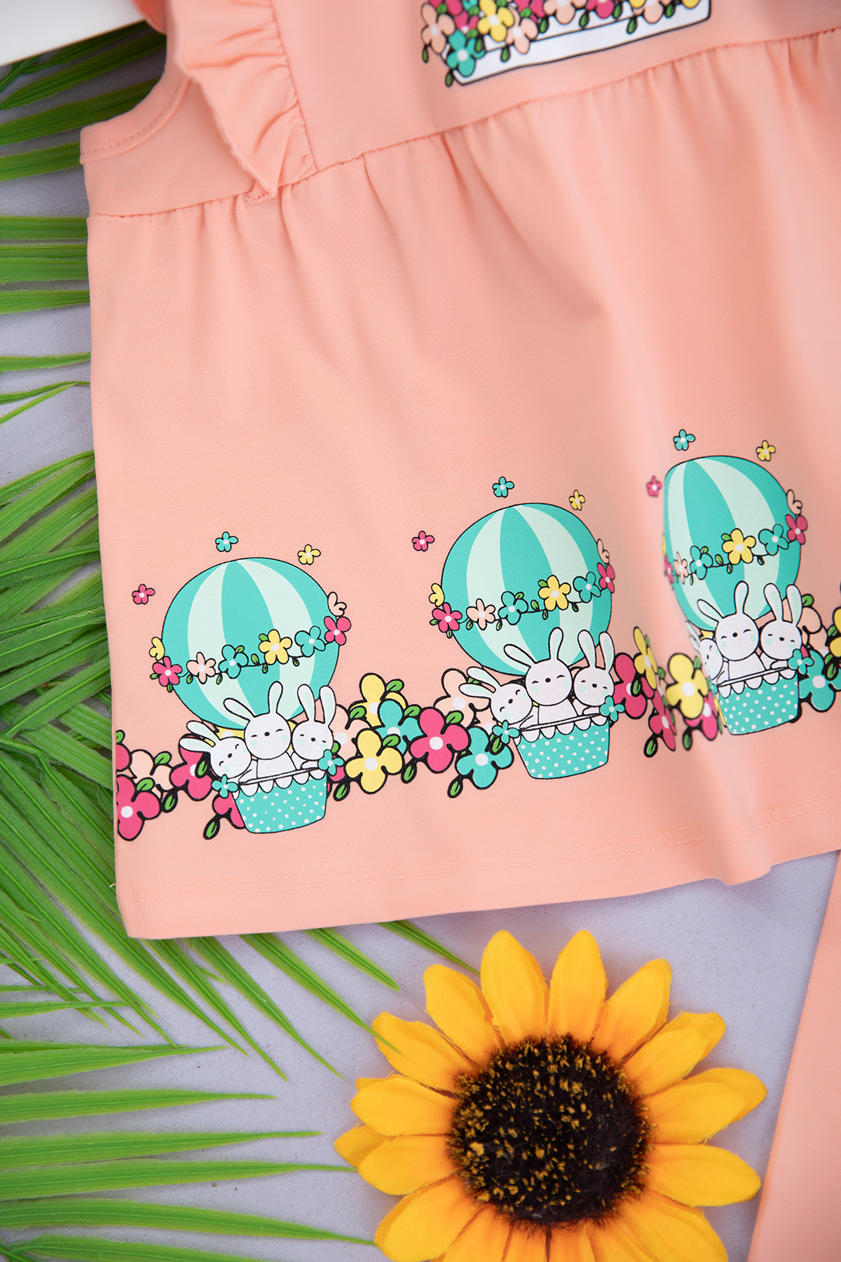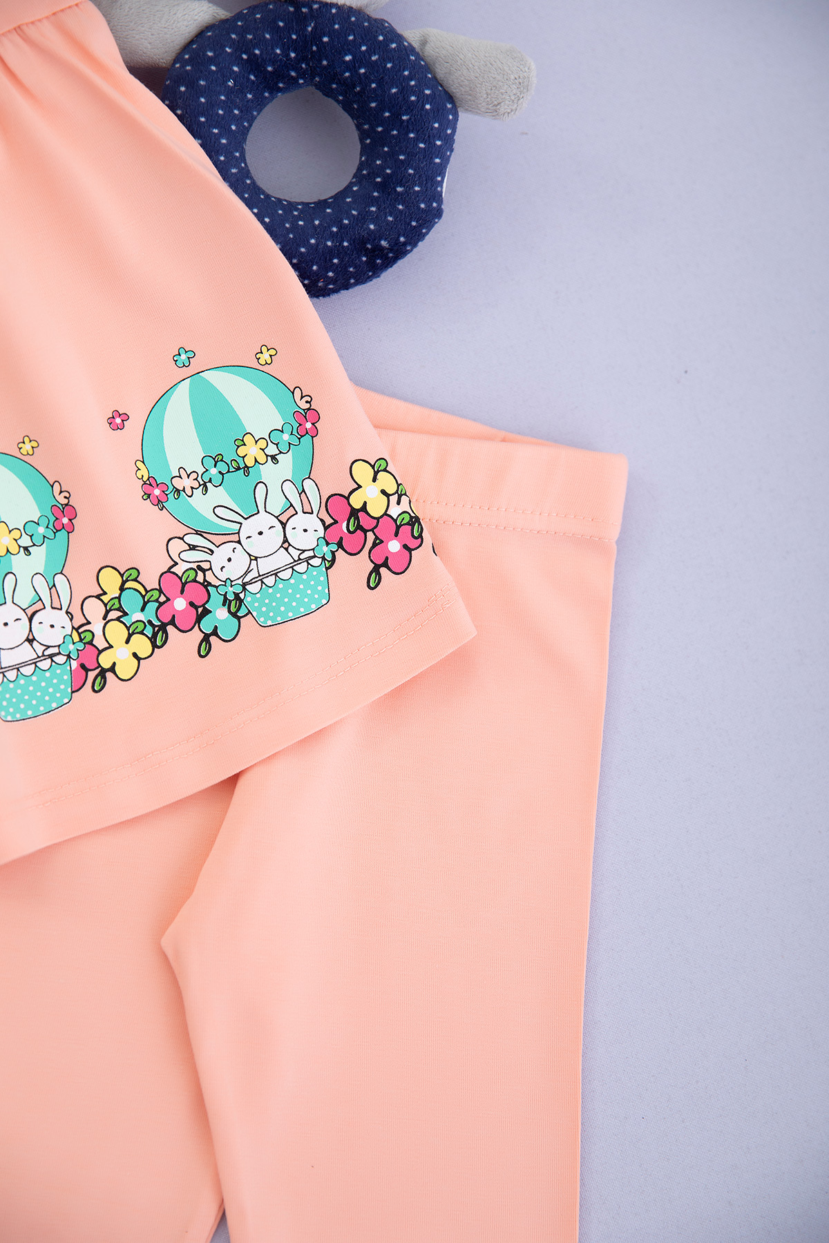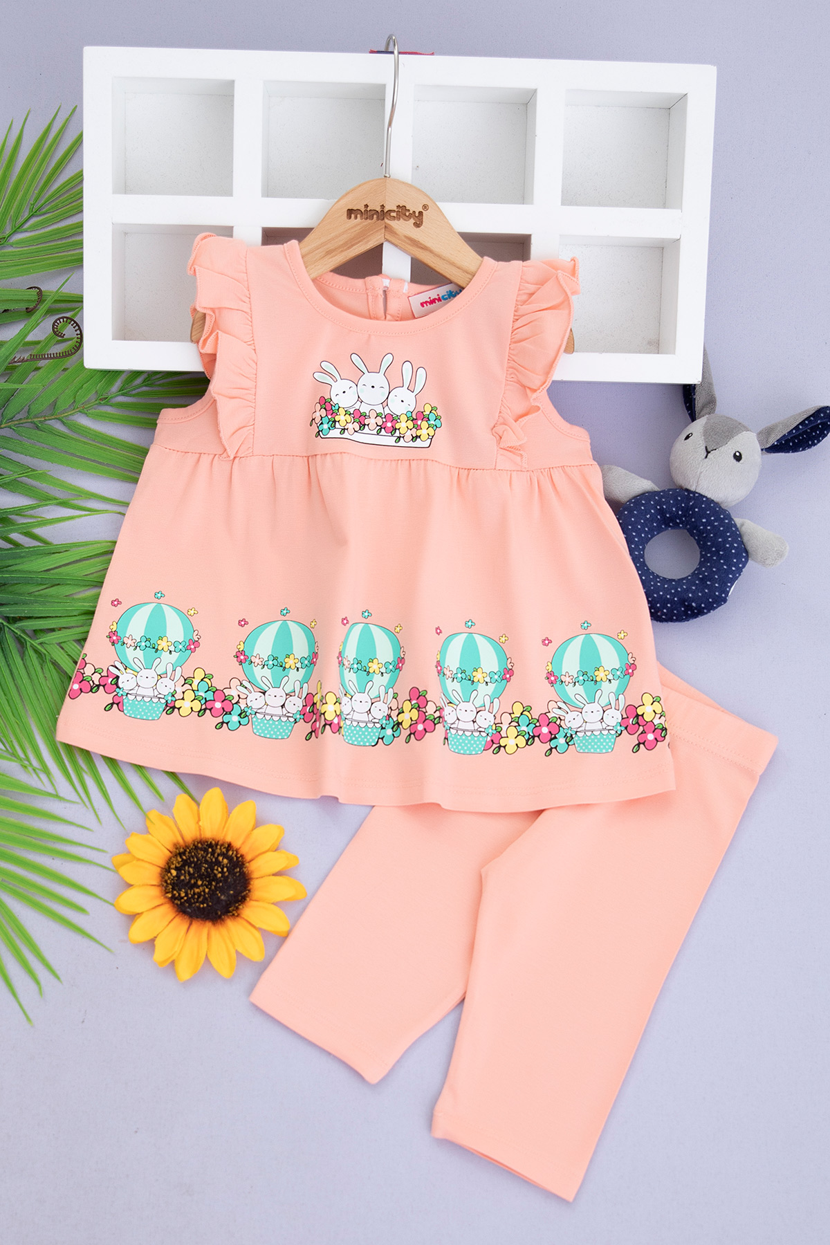 Kız Çocuk Balonlu Tavşanlar Askılı Taytlı Takım - 618 (1-4 Yaş)