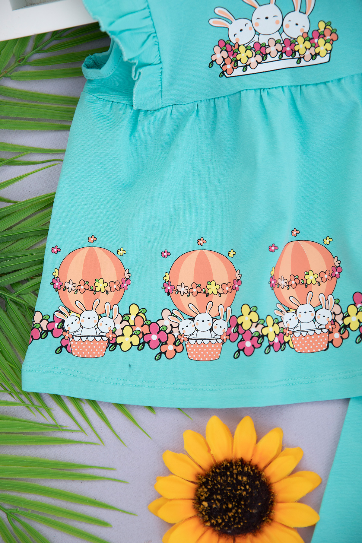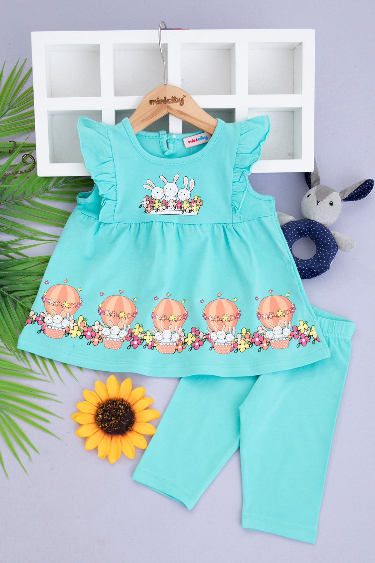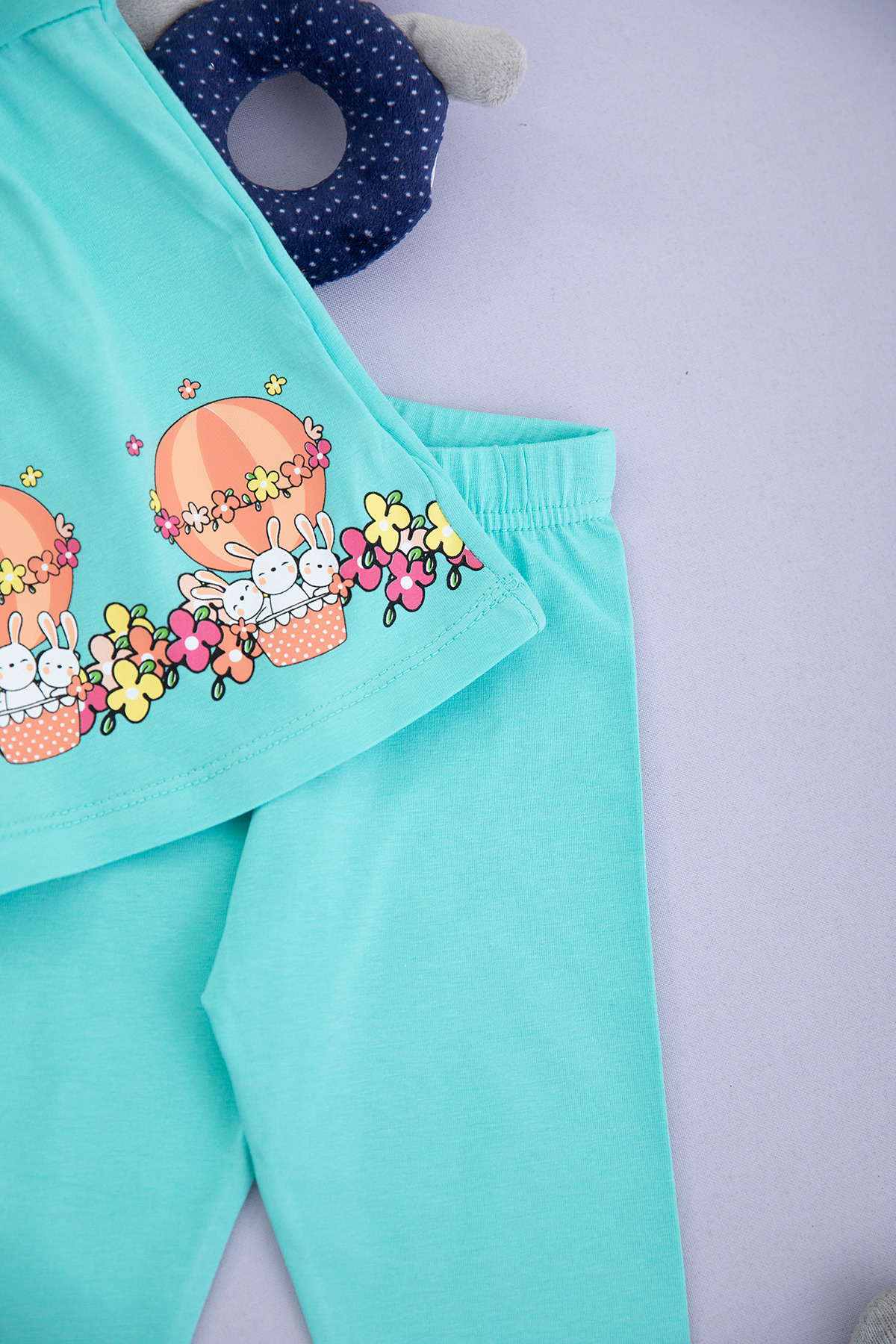Kız Çocuk Balonlu Tavşanlar Askılı Taytlı Takım - 618 (1-4 Yaş)