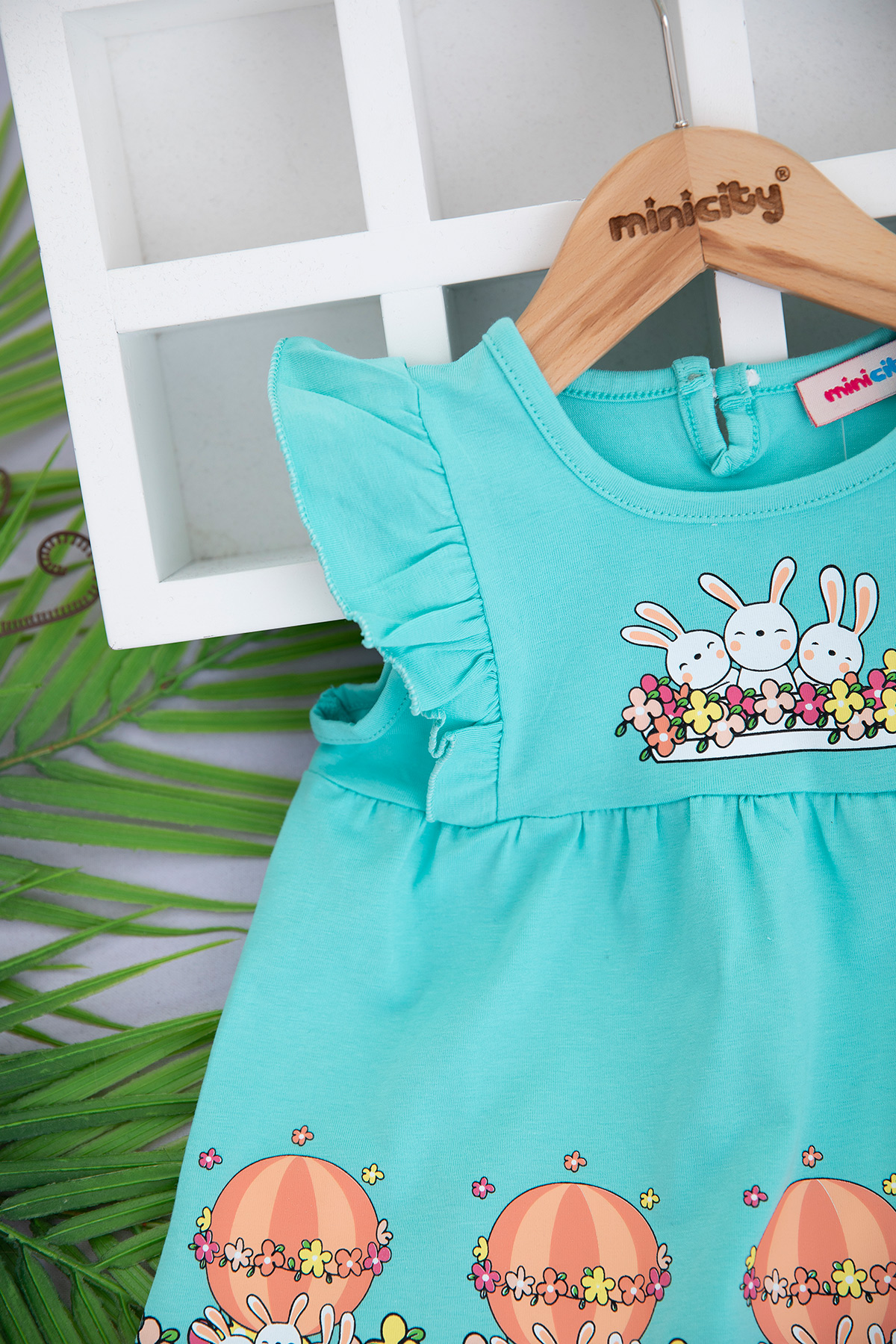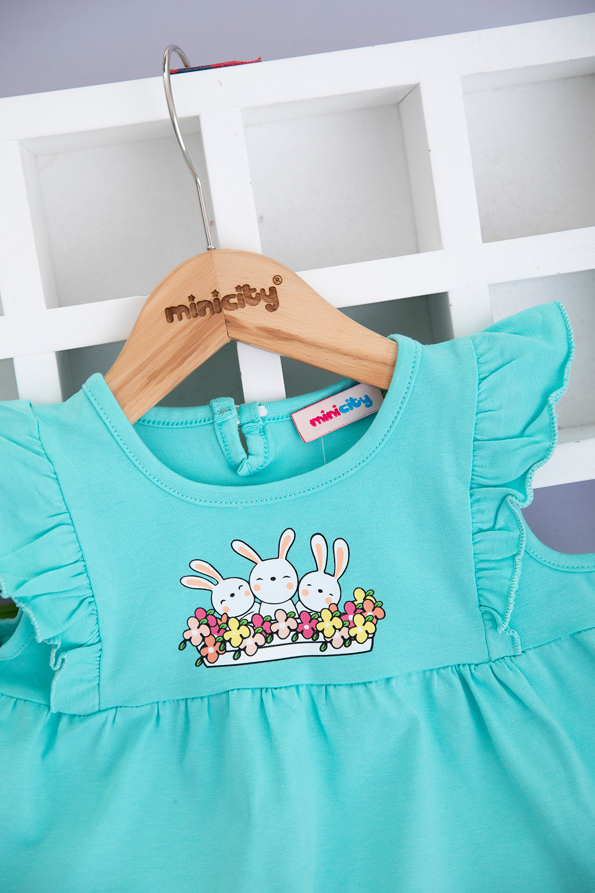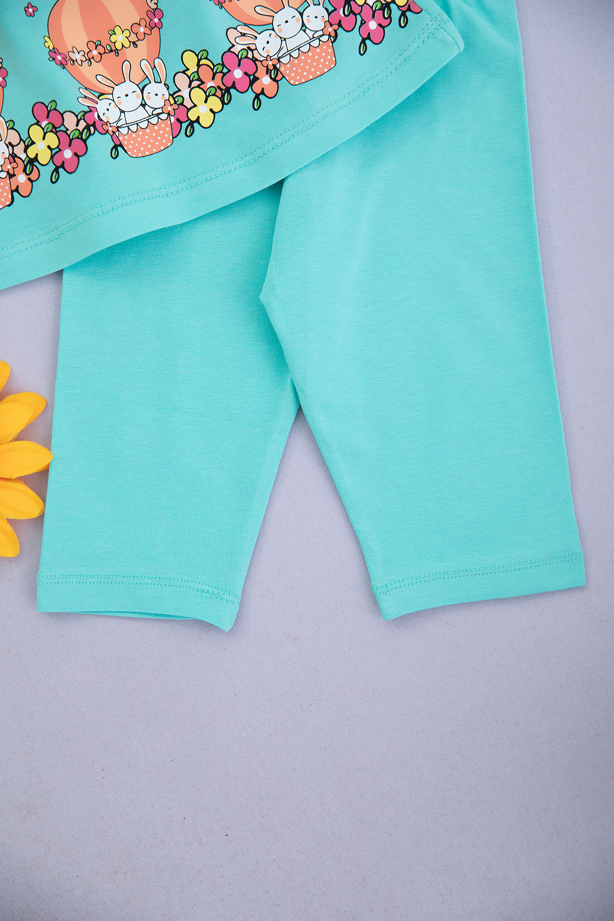 Kız Çocuk Balonlu Tavşanlar Askılı Taytlı Takım - 618 (1-4 Yaş)