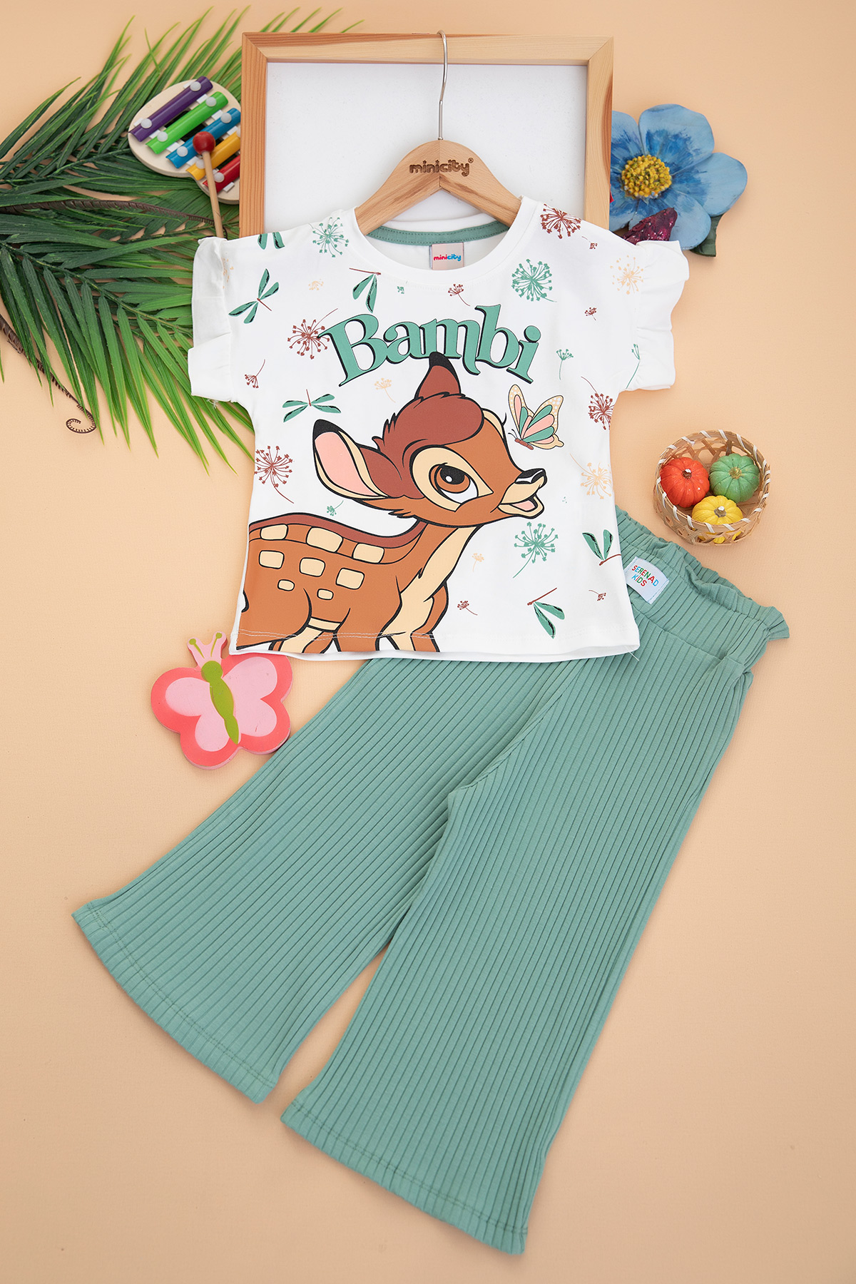 Kız Çocuk Bambi Baskılı Bermuda Fırfırlı Takım - 6300 (3-10 Yaş)