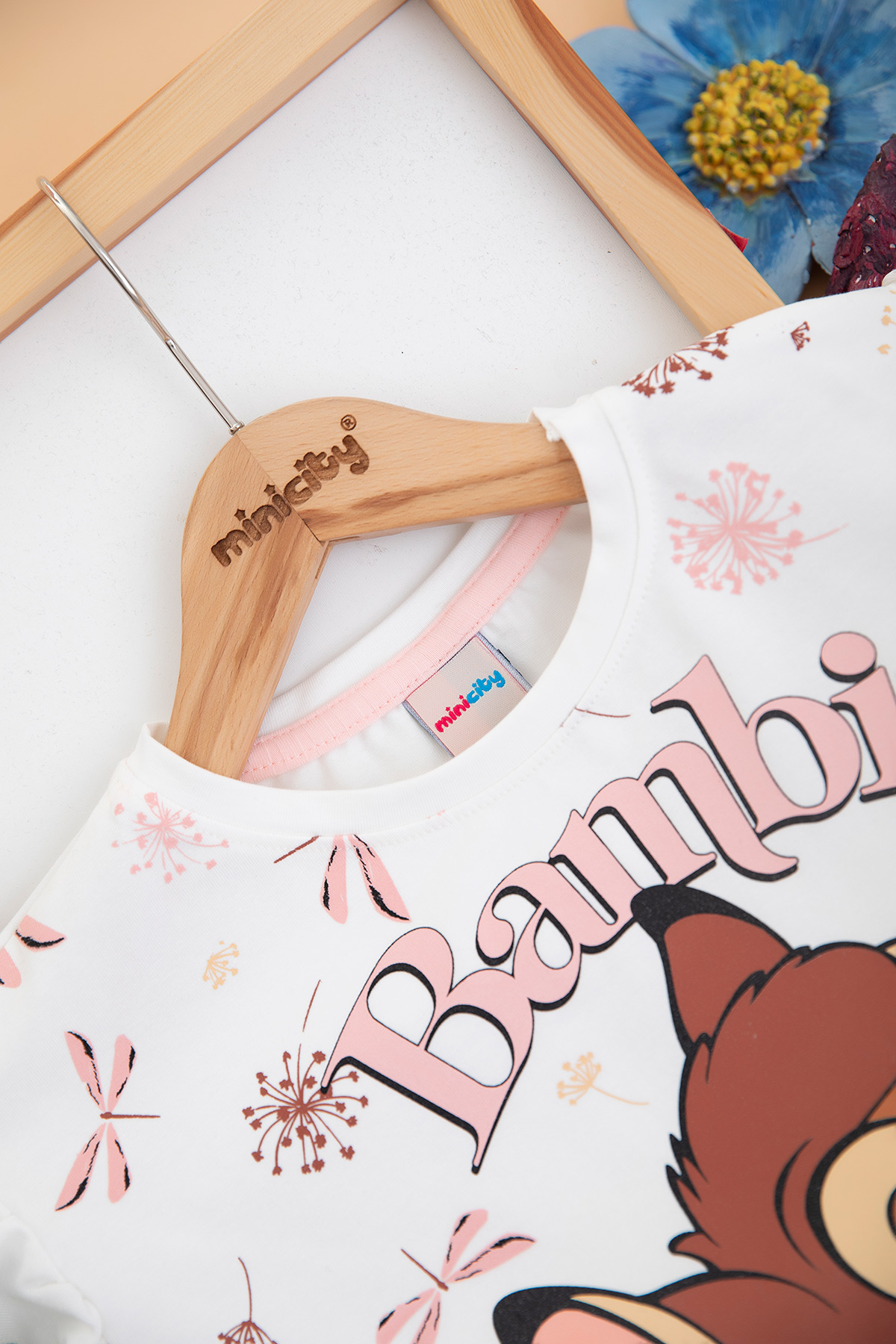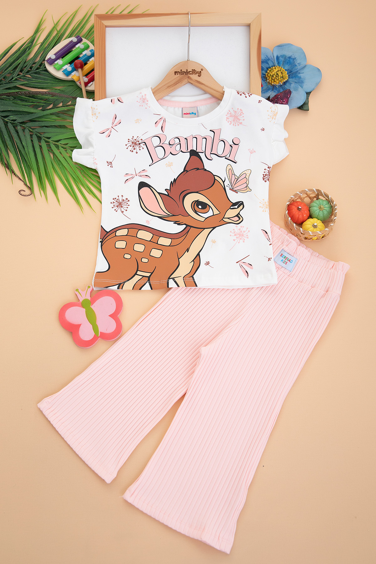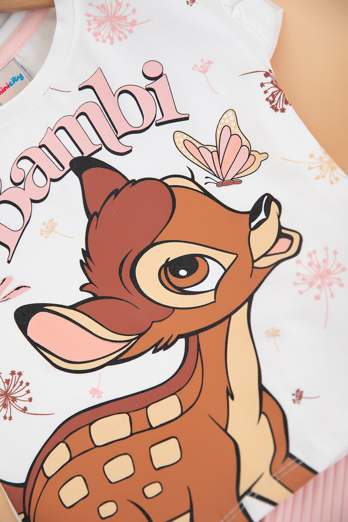Kız Çocuk Bambi Baskılı Bermuda Fırfırlı Takım - 6300 (3-10 Yaş)