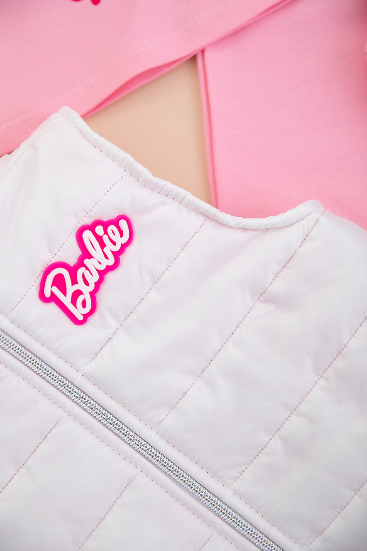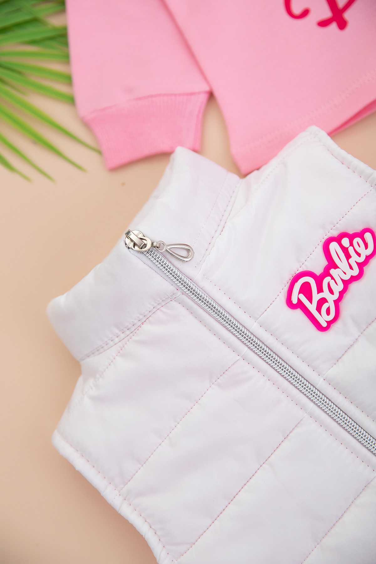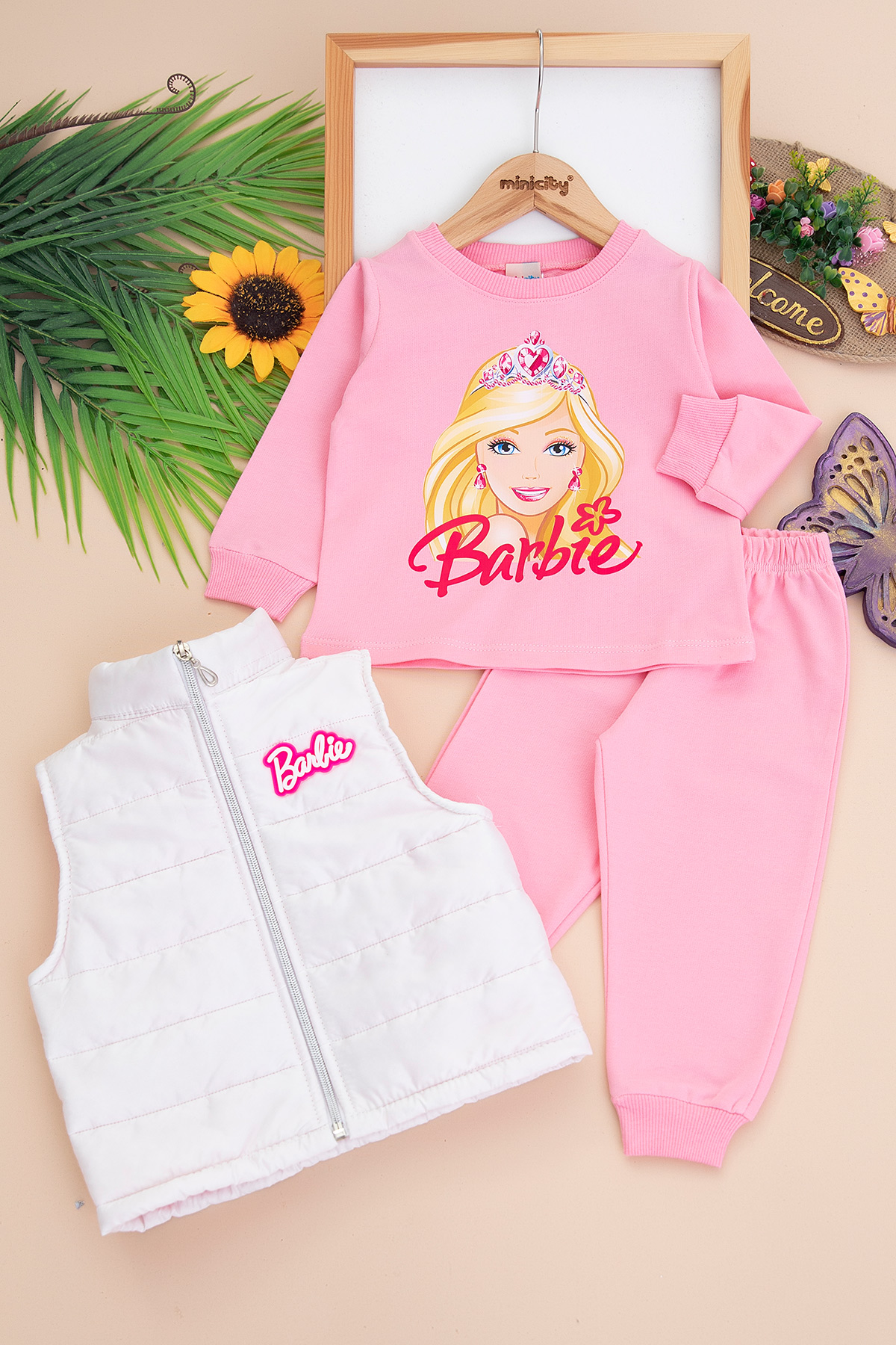 Kız Çocuk Barbie Baskılı Beyaz Yelekli Takım - 246 (2-4 Yaş)