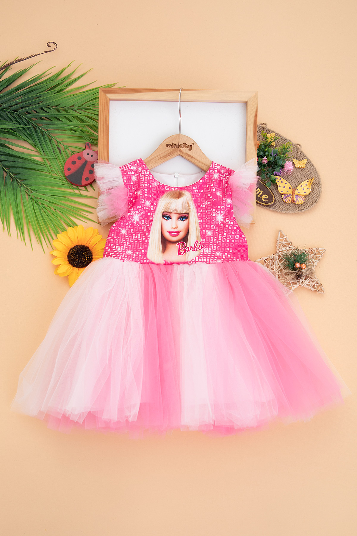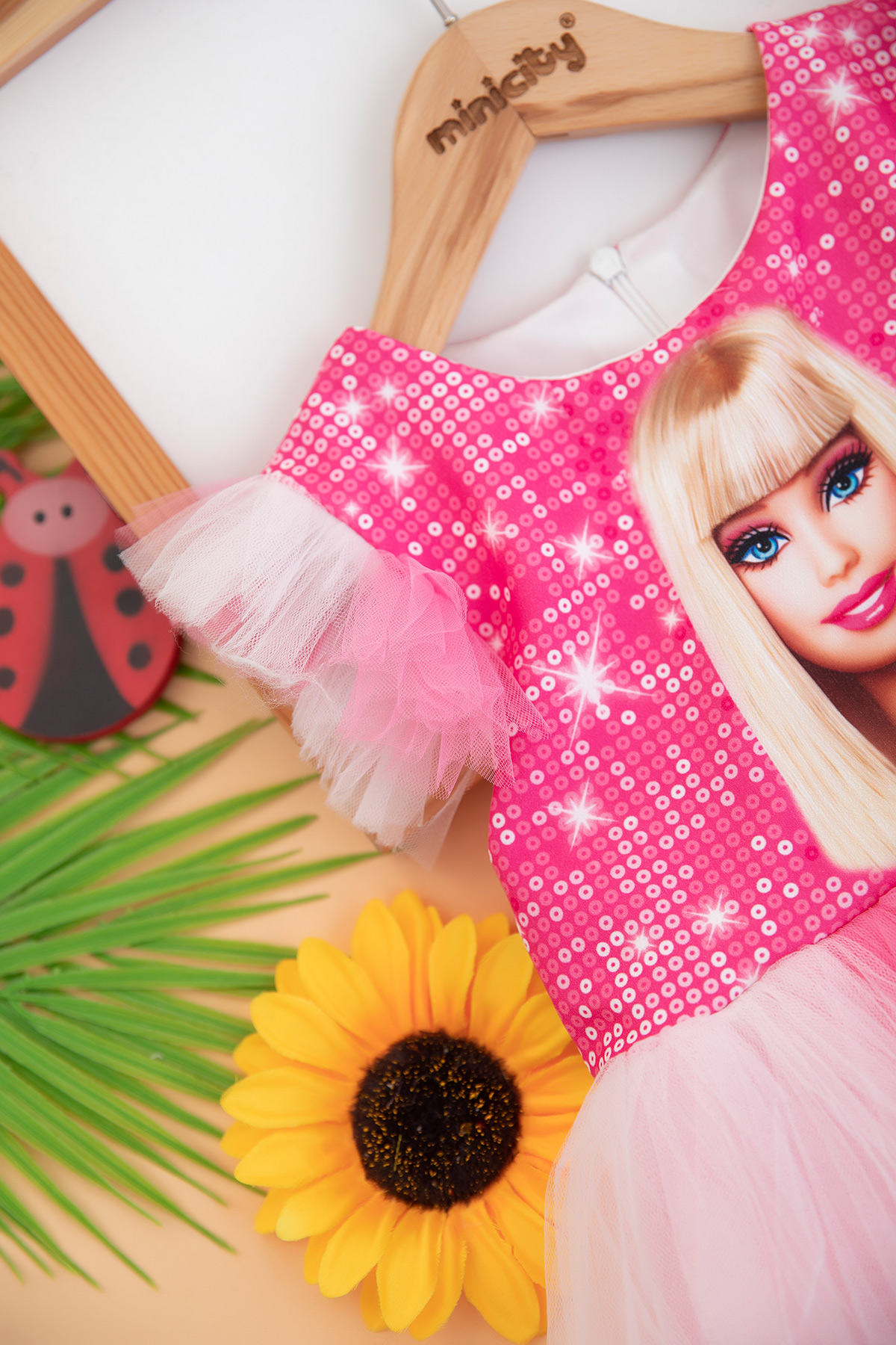 Kız Çocuk Barbie Baskılı Elbise - 876 (2-5 Yaş)