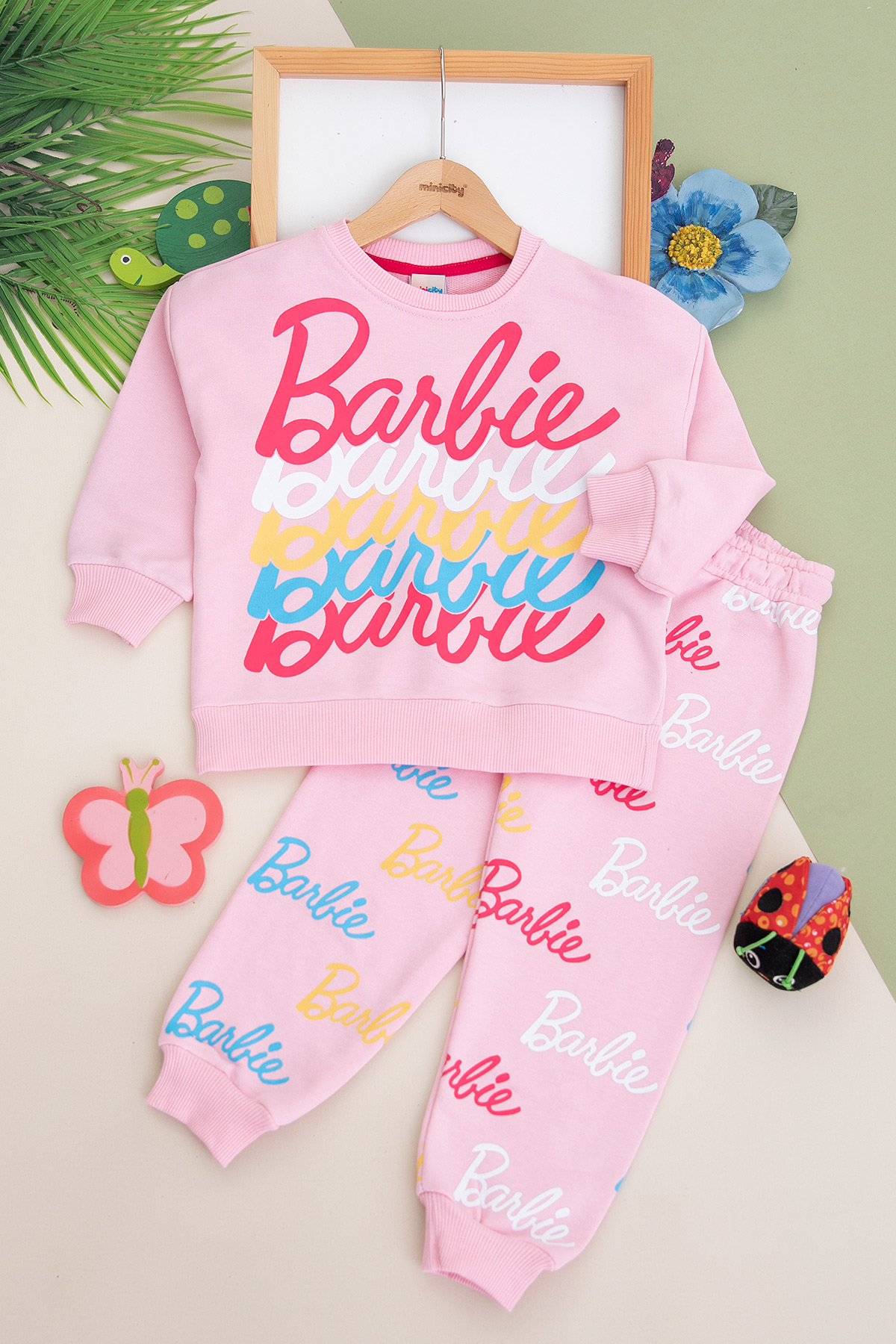 Kız Çocuk Barbie Baskılı Üçip Takım (4-9 Yaş)