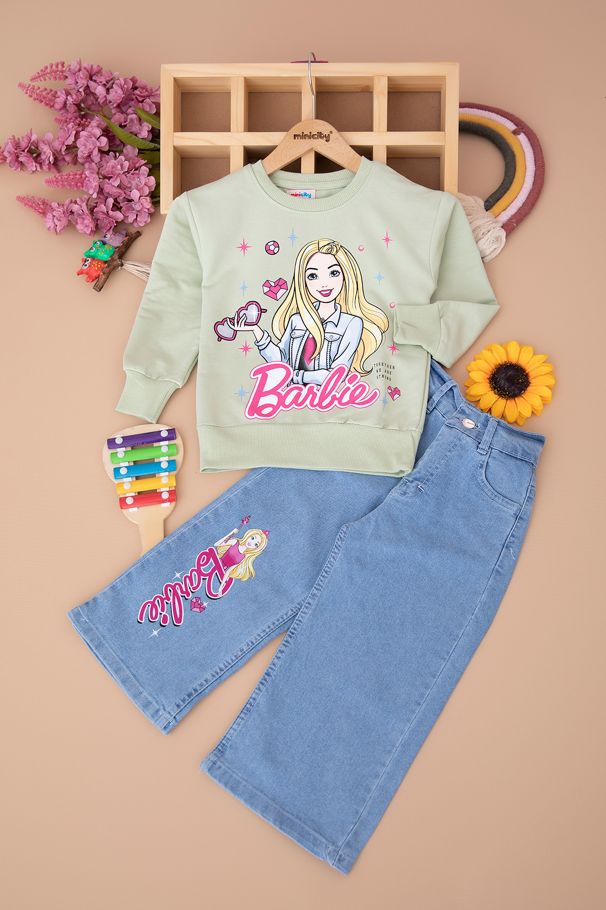 Kız Çocuk Barbie Kot Pantolon Takım - 8226 (3-10 Yaş)
