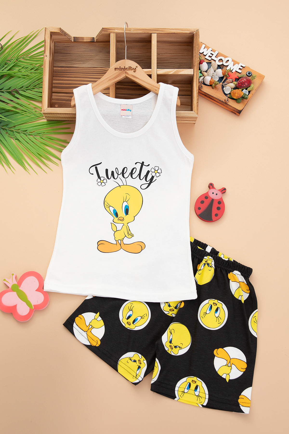 Kız Çocuk Baskılı Askılı Şortlu Takım - 2116 (3-14 Yaş)