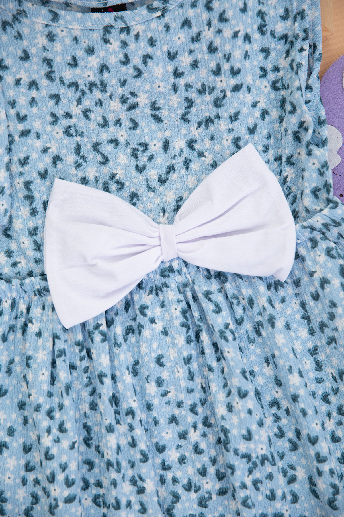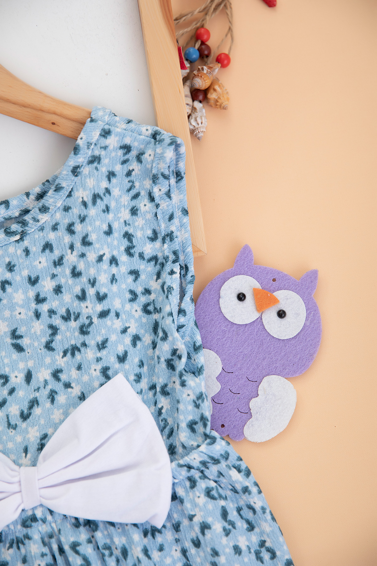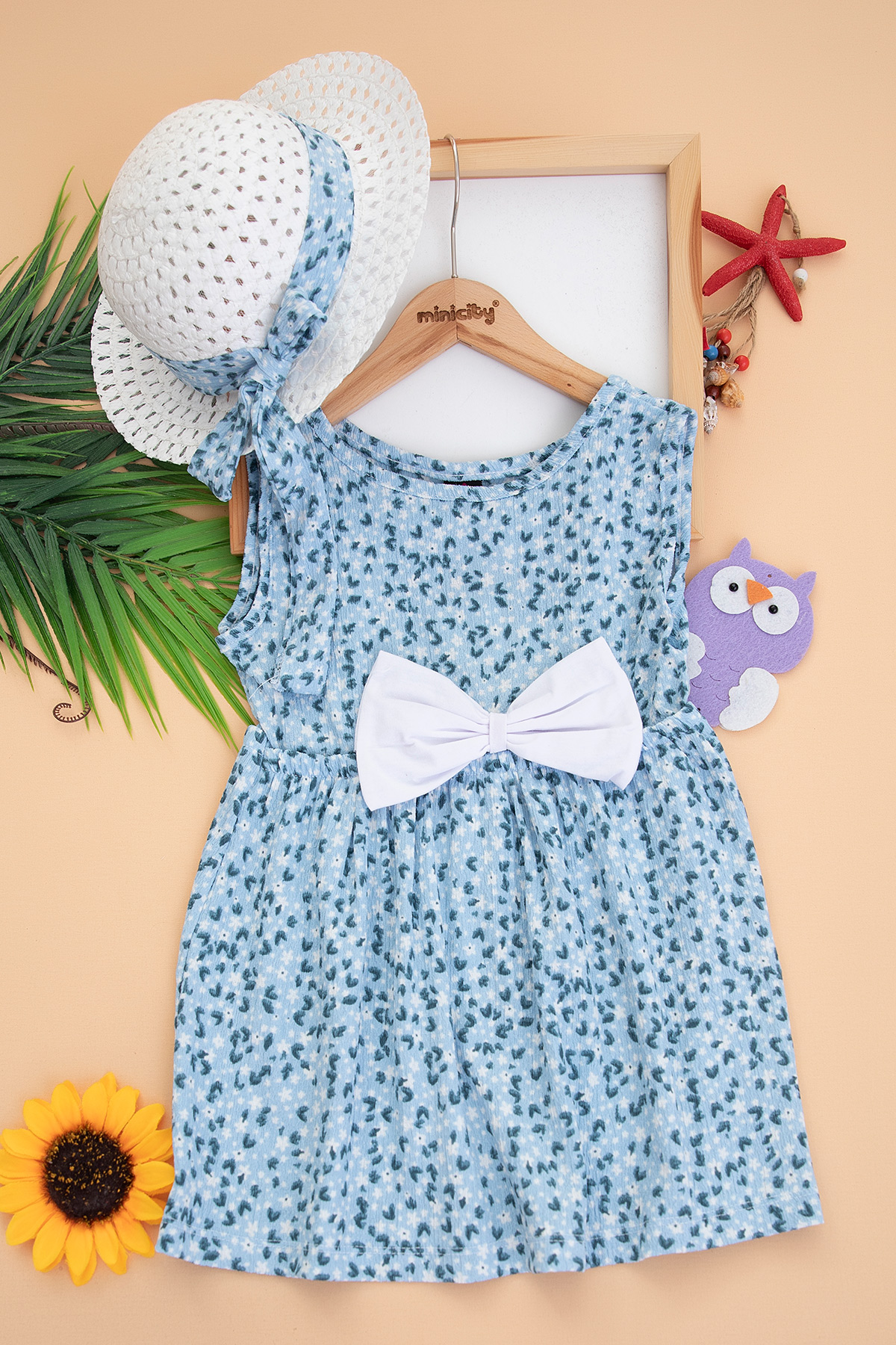 Kız Çocuk Baskılı Bürümcük Şapkalı Elbise - 10579 (7-11 Yaş)