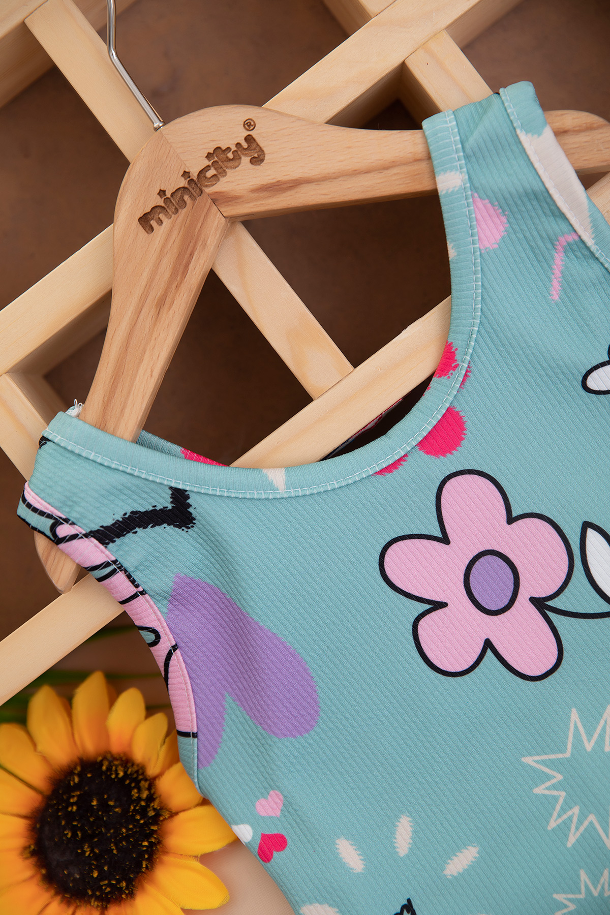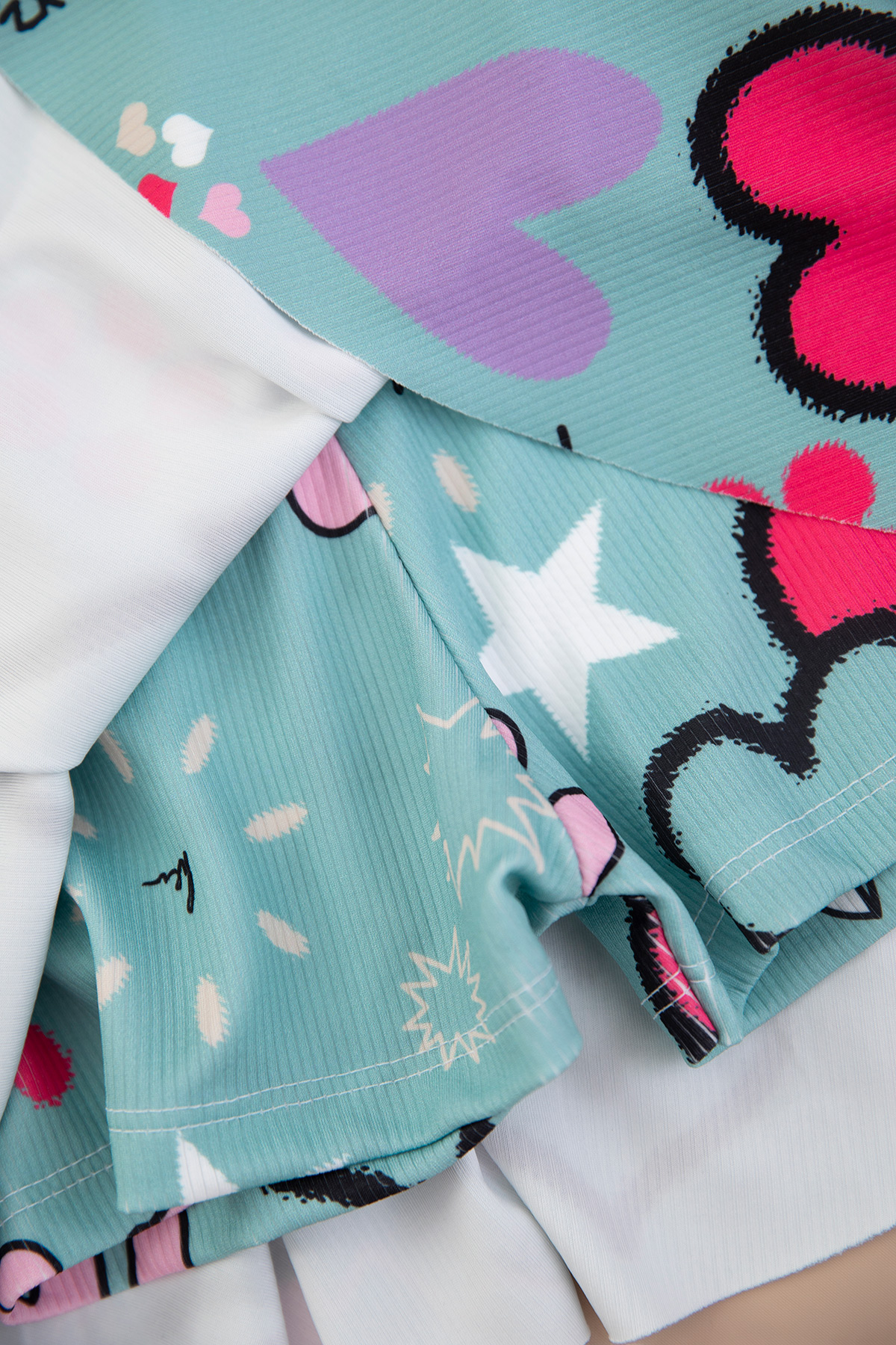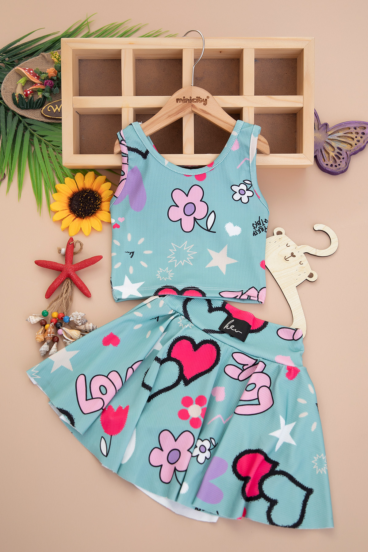 Kız Çocuk Baskılı Crop Badi Şort Etek Takım - 2775B (3-14 Yaş)