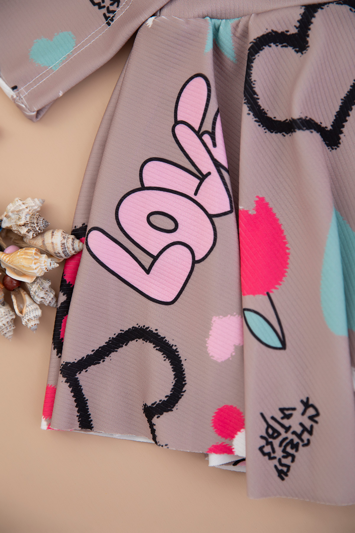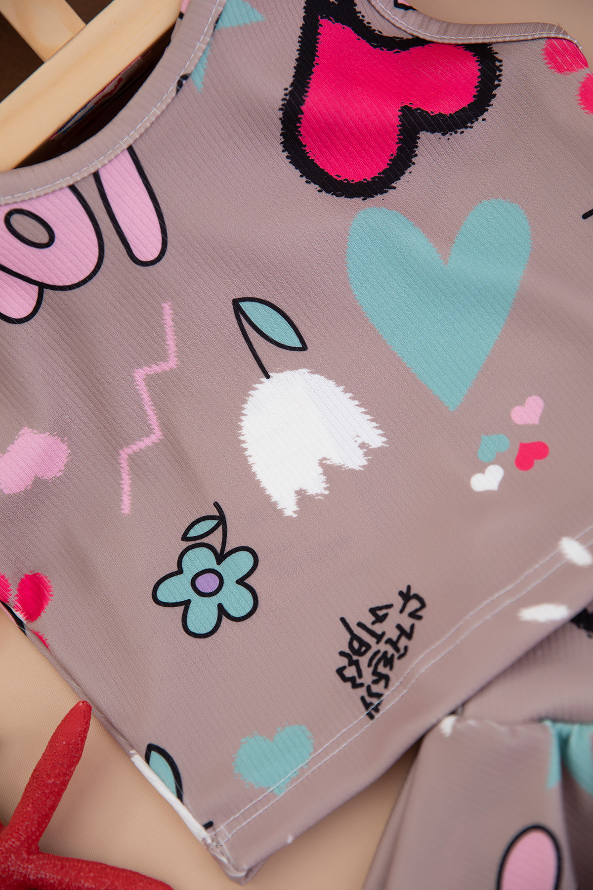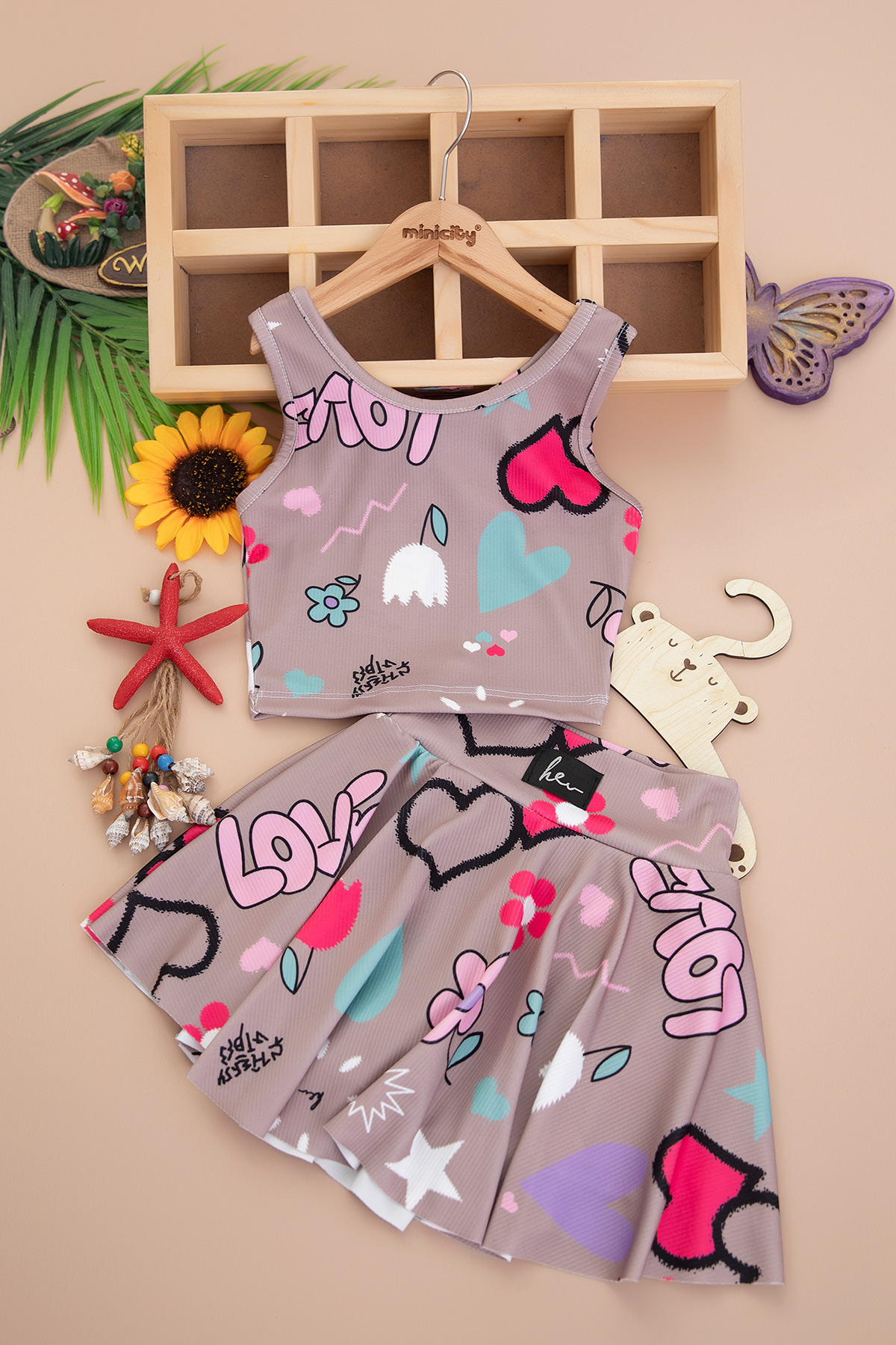Kız Çocuk Baskılı Crop Badi Şort Etek Takım - 2775B (3-14 Yaş)