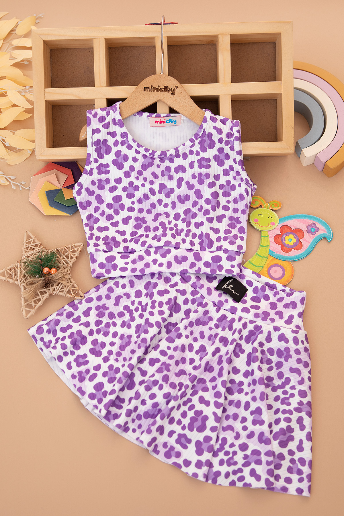 Kız Çocuk Baskılı Crop Badi Şort Etek Takım - 2775B (3-14 Yaş)