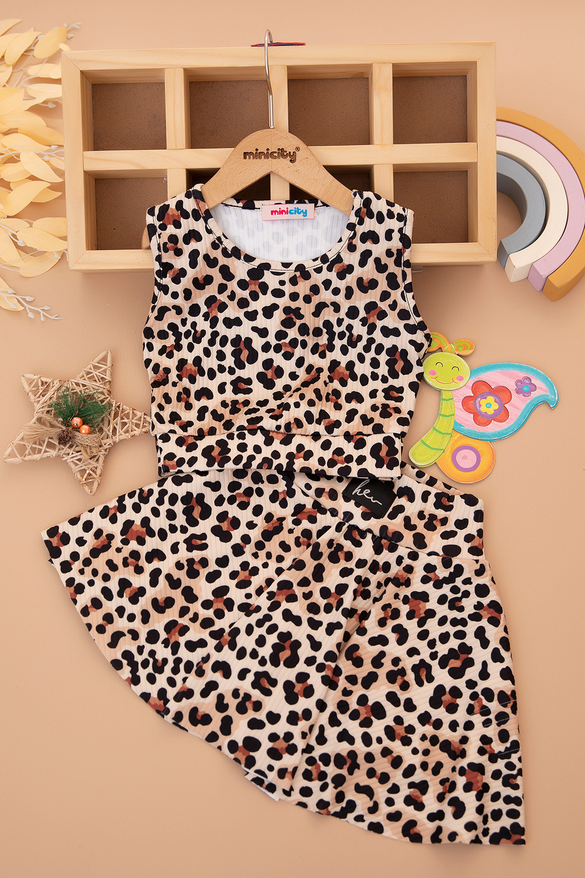 Kız Çocuk Baskılı Crop Badi Şort Etek Takım - 2775B (3-14 Yaş)