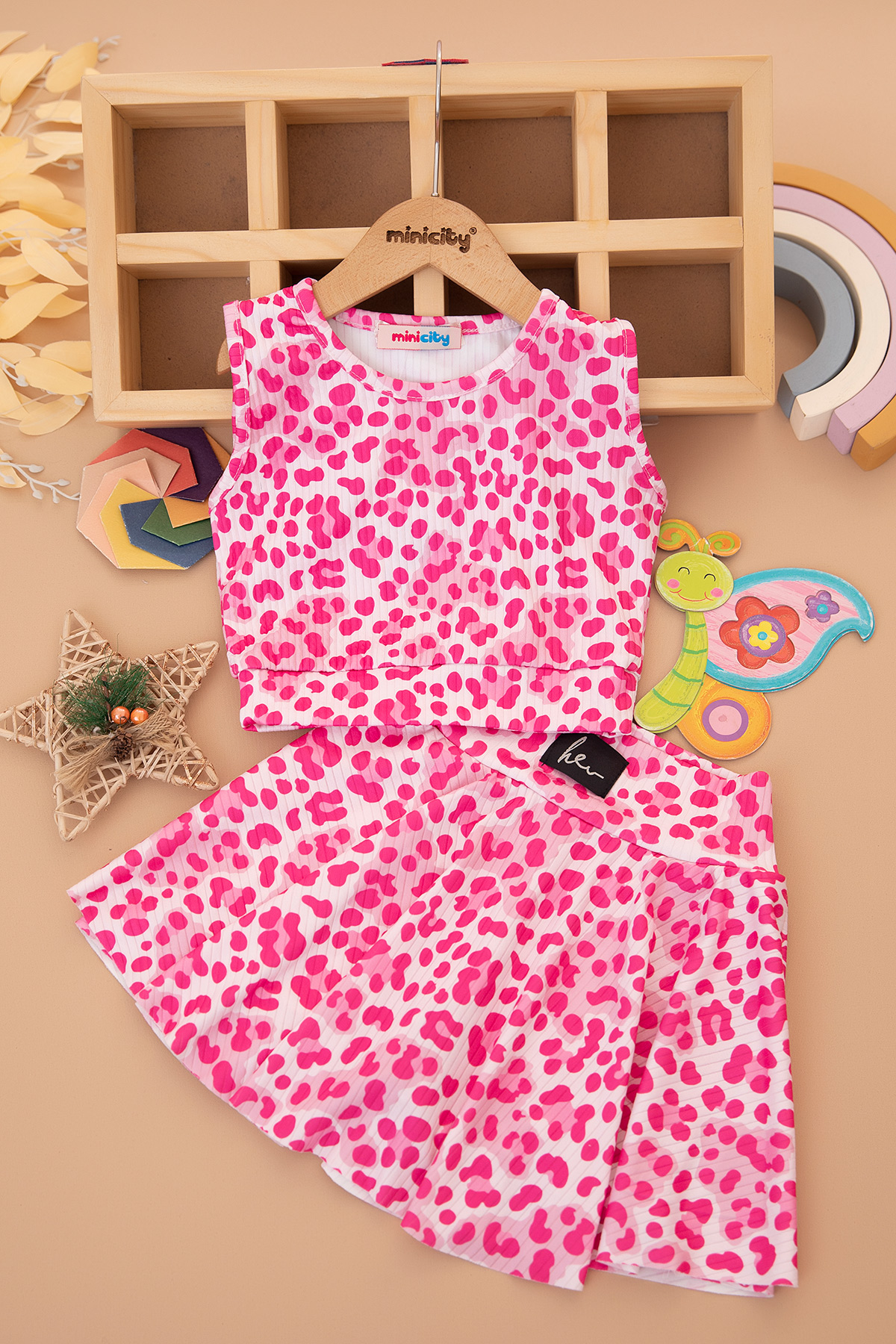 Kız Çocuk Baskılı Crop Badi Şort Etek Takım - 2775B (3-14 Yaş)