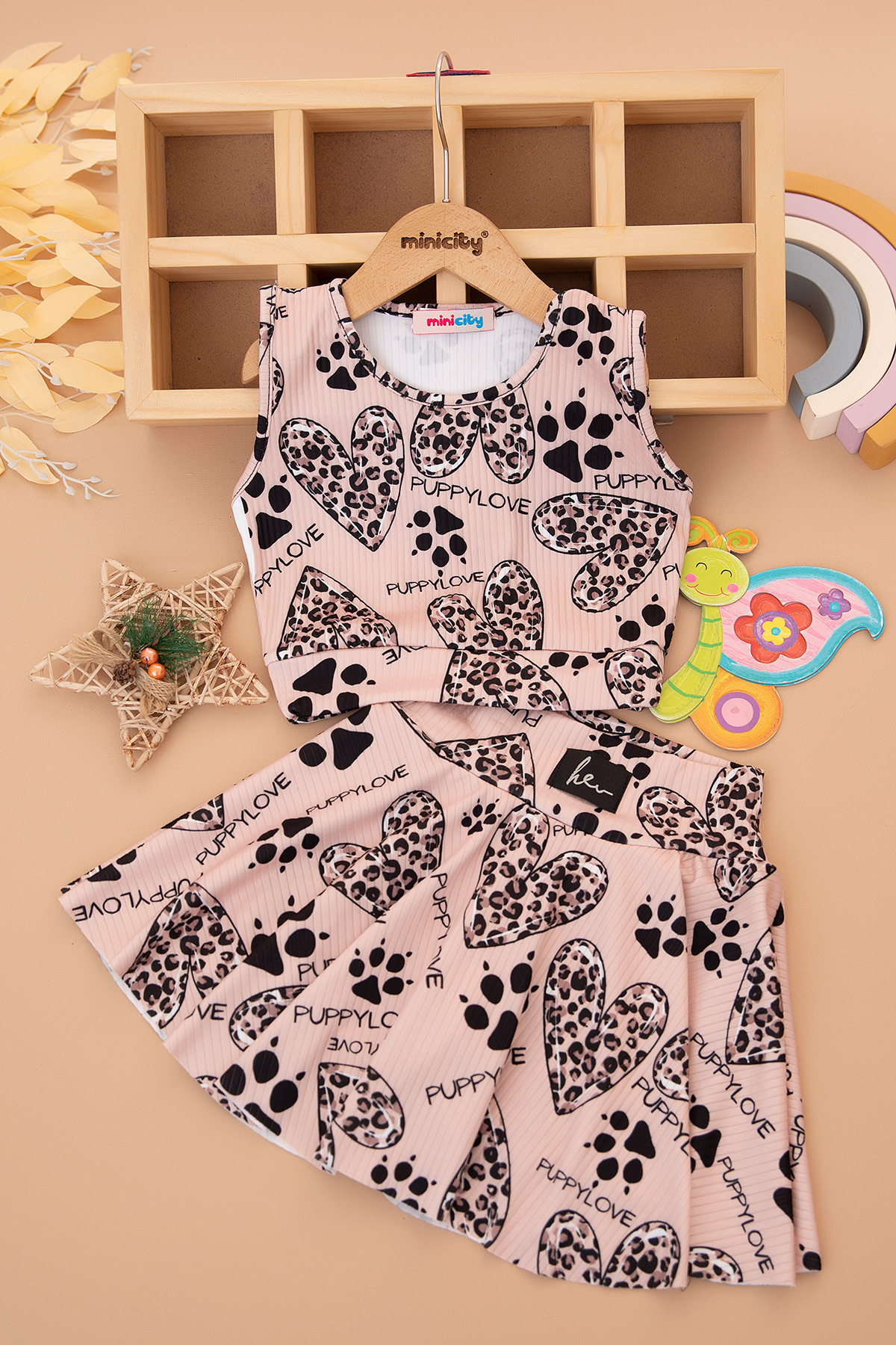 Kız Çocuk Baskılı Crop Badi Şort Etek Takım - 2775B (3-14 Yaş)