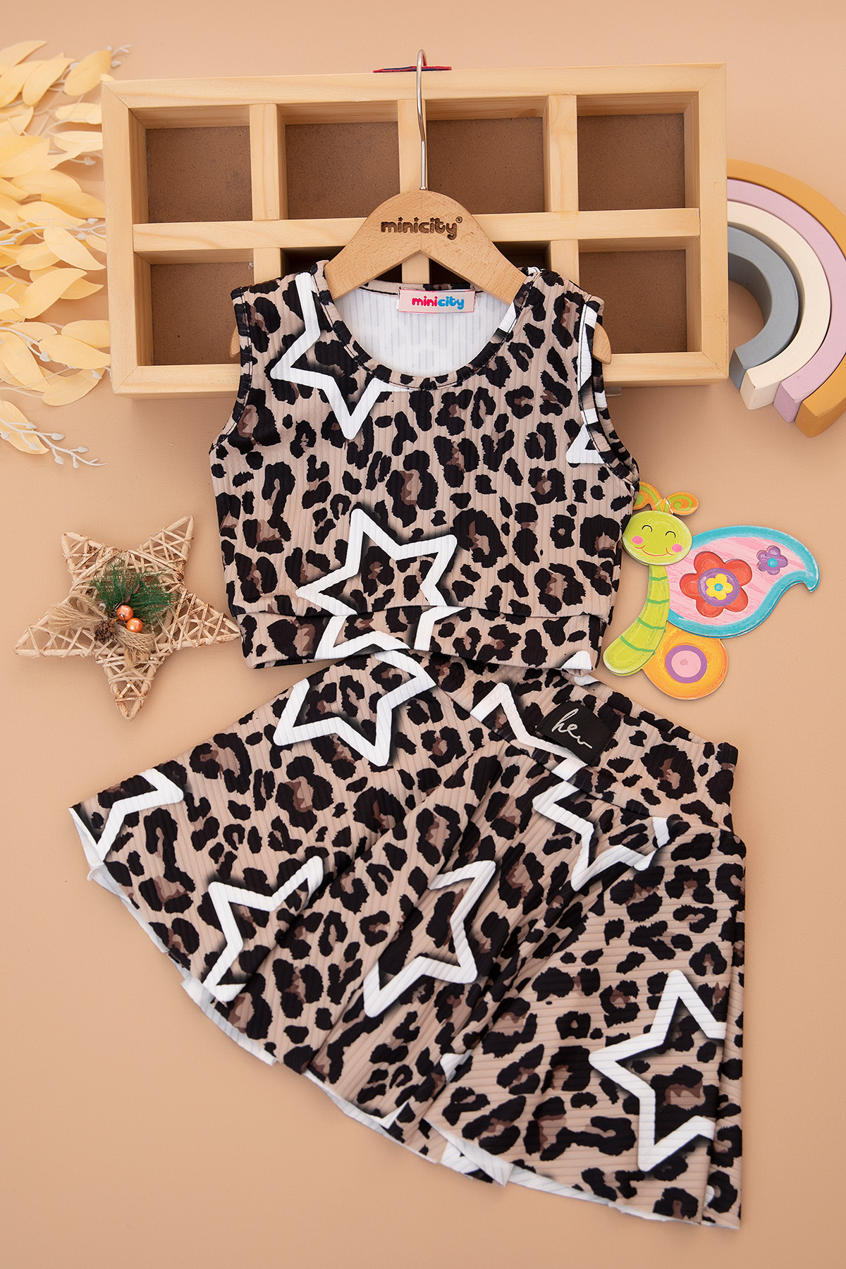 Kız Çocuk Baskılı Crop Badi Şort Etek Takım - 2775B (3-14 Yaş)
