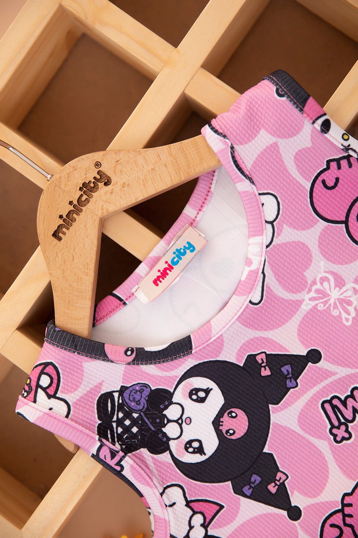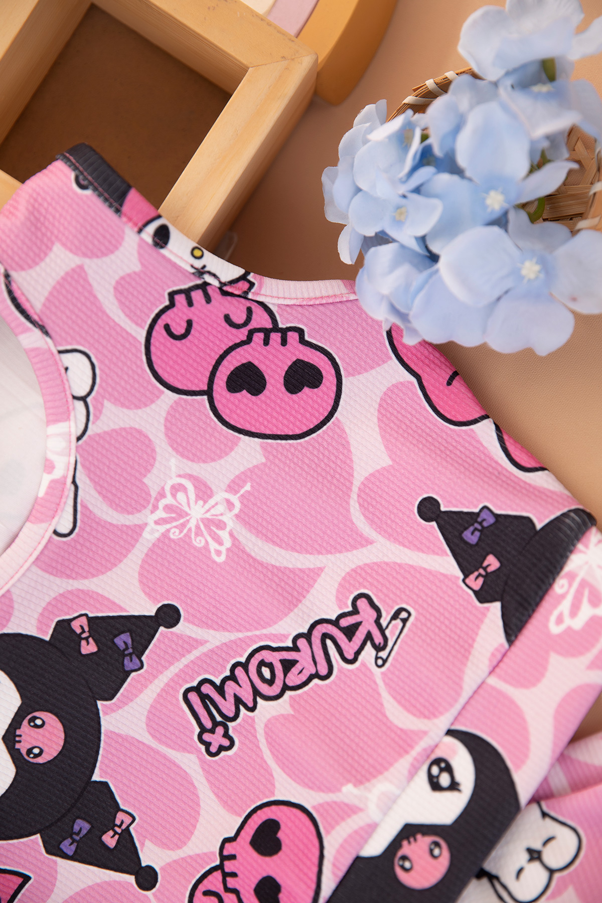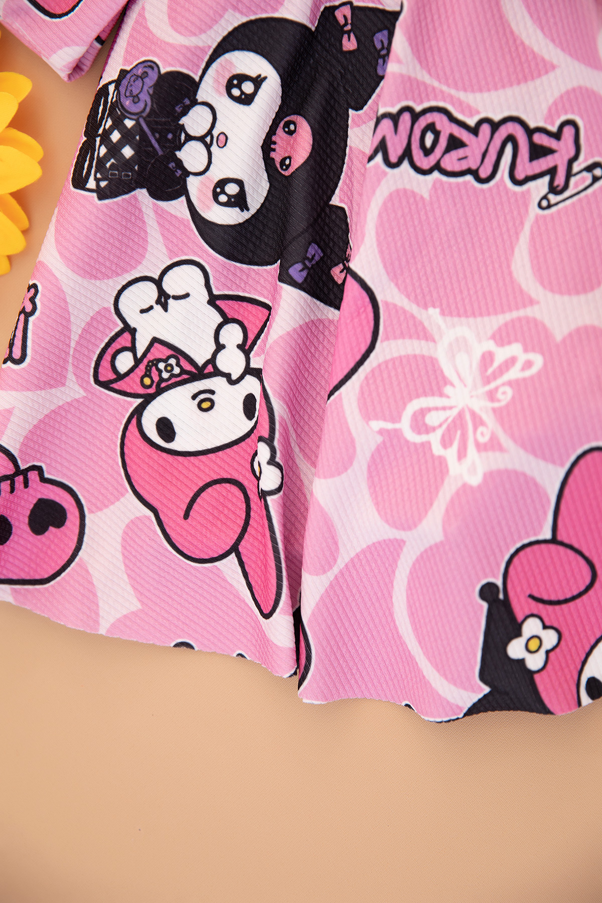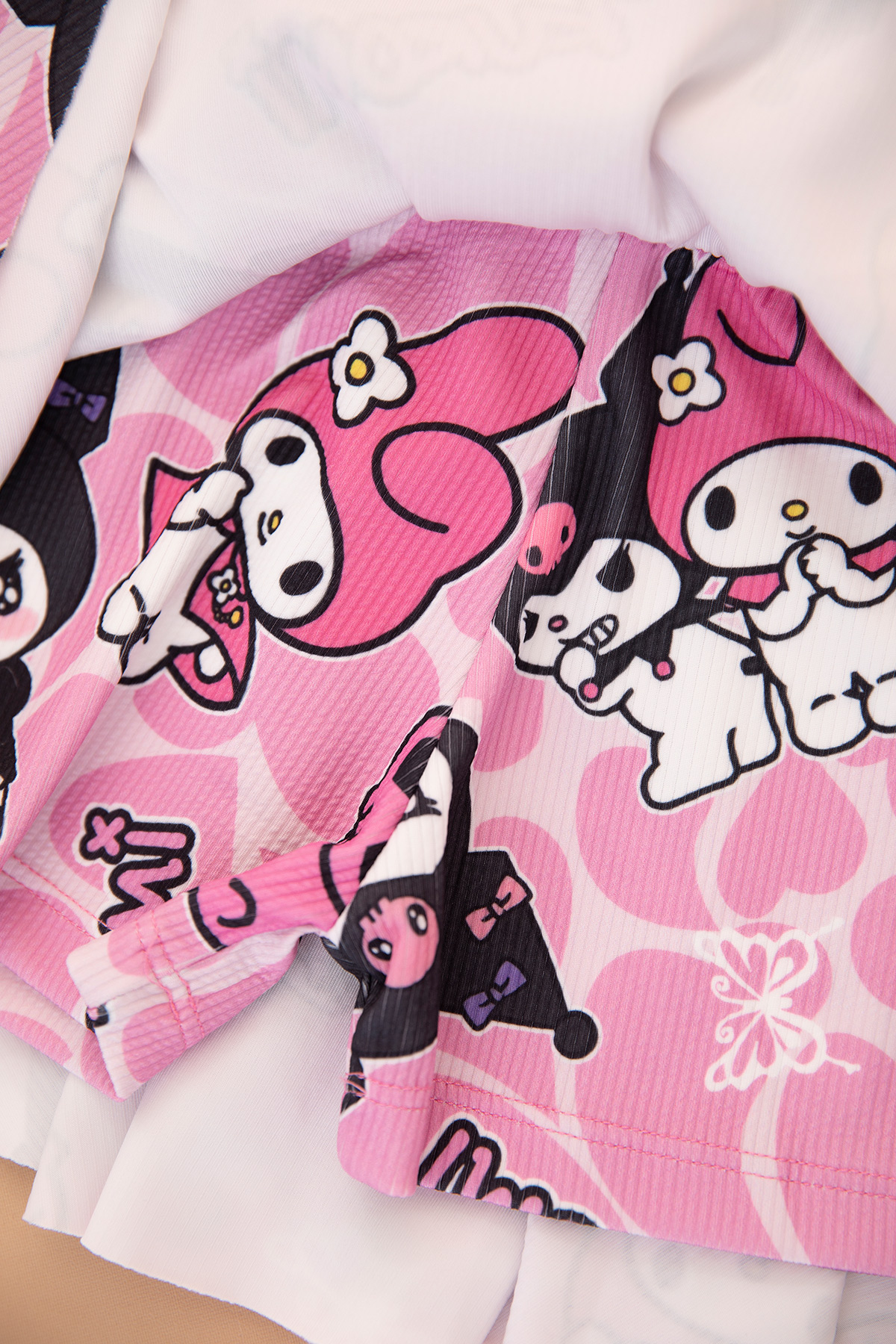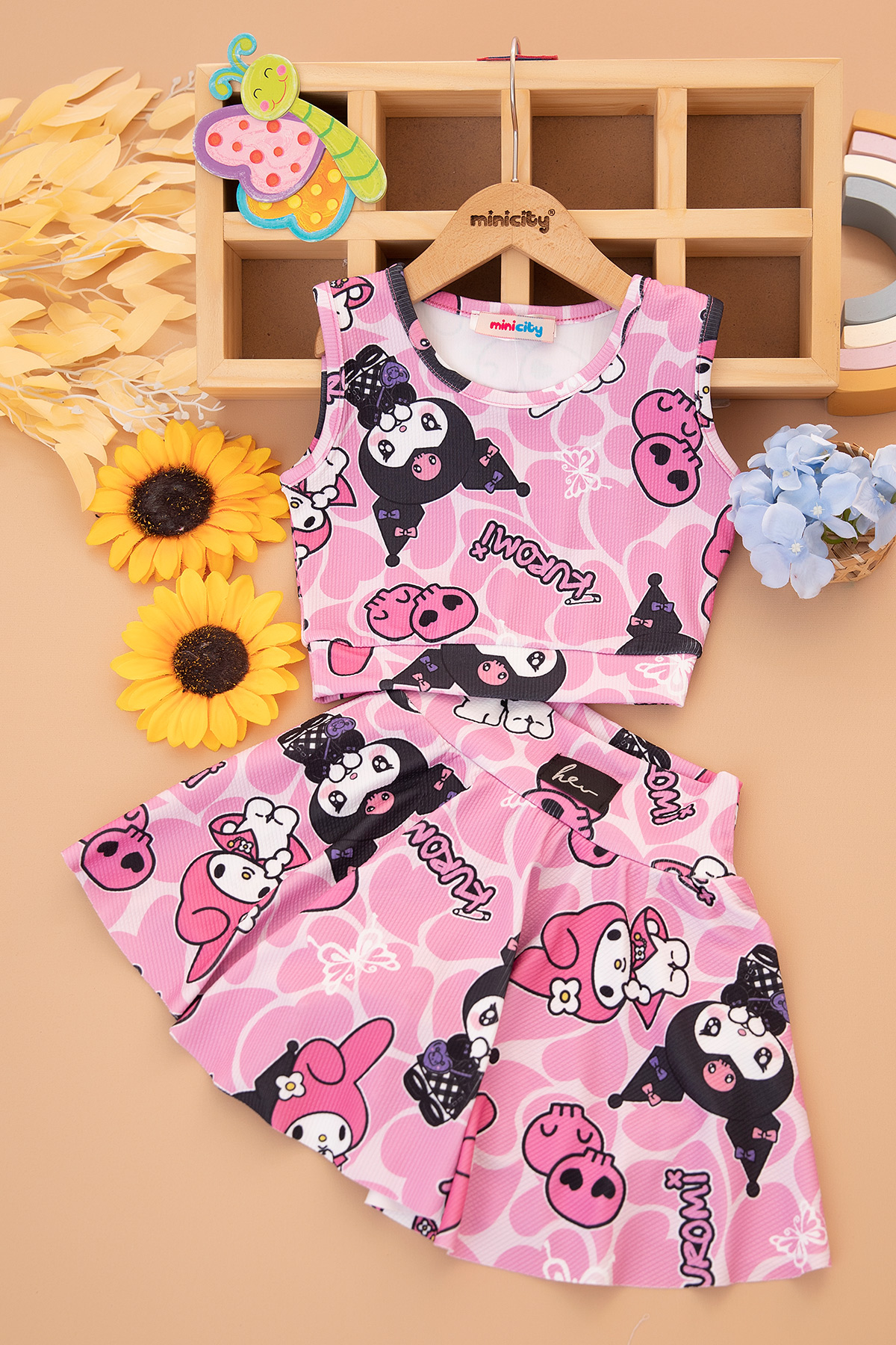 Kız Çocuk Baskılı Crop Badi Şort Etek Takım - 2775B (3-14 Yaş)