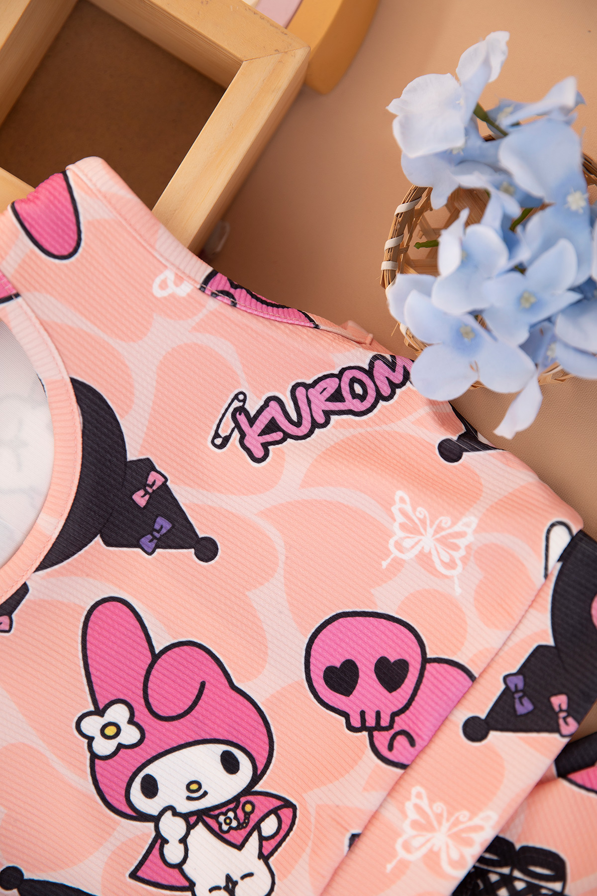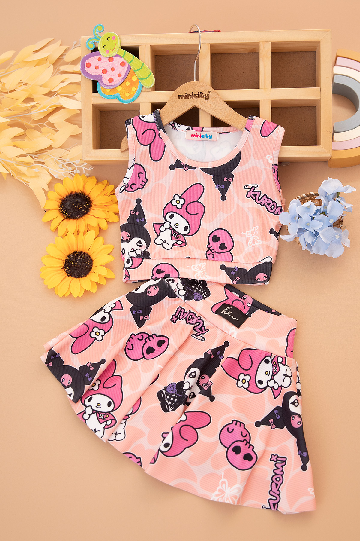 Kız Çocuk Baskılı Crop Badi Şort Etek Takım - 2775B (3-14 Yaş)