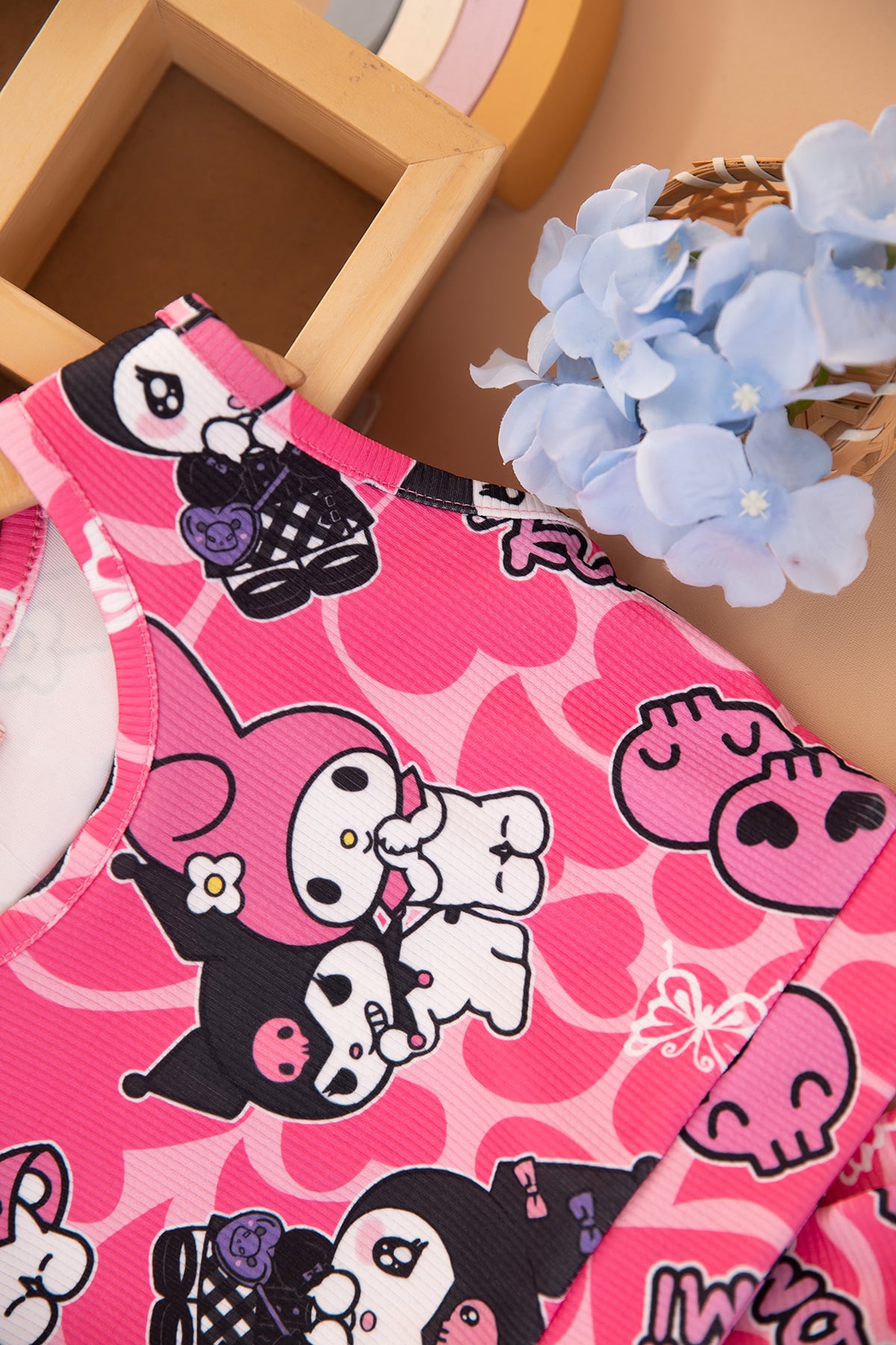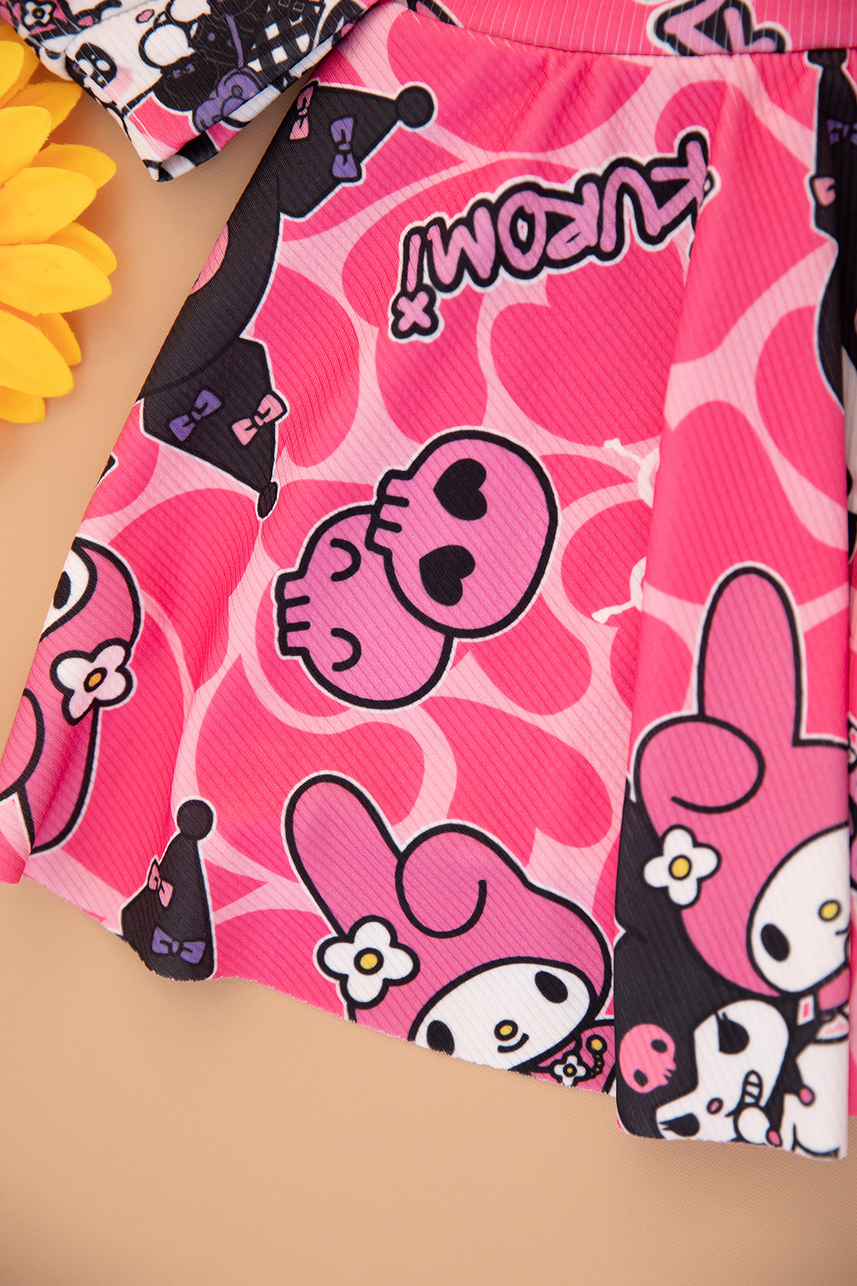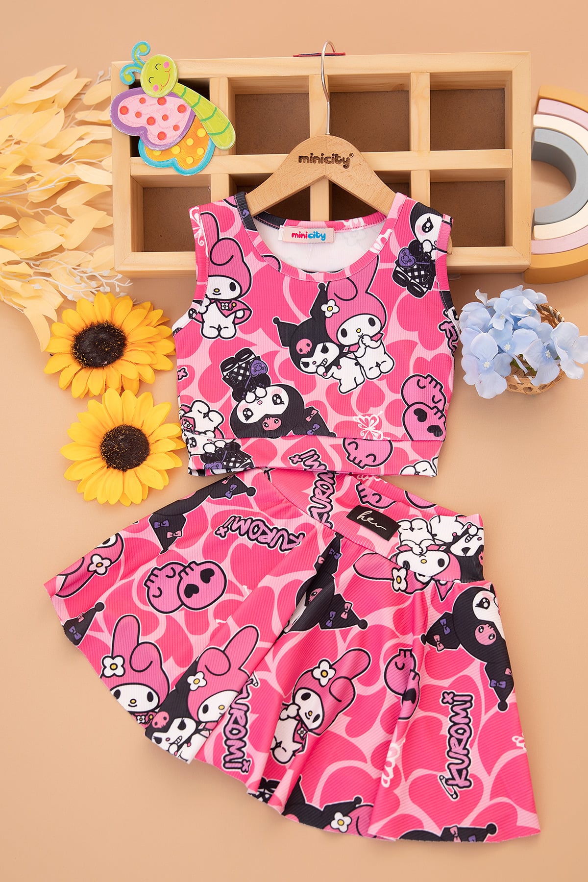 Kız Çocuk Baskılı Crop Badi Şort Etek Takım - 2775B (3-14 Yaş)