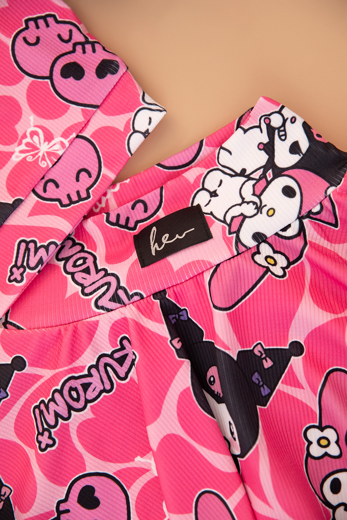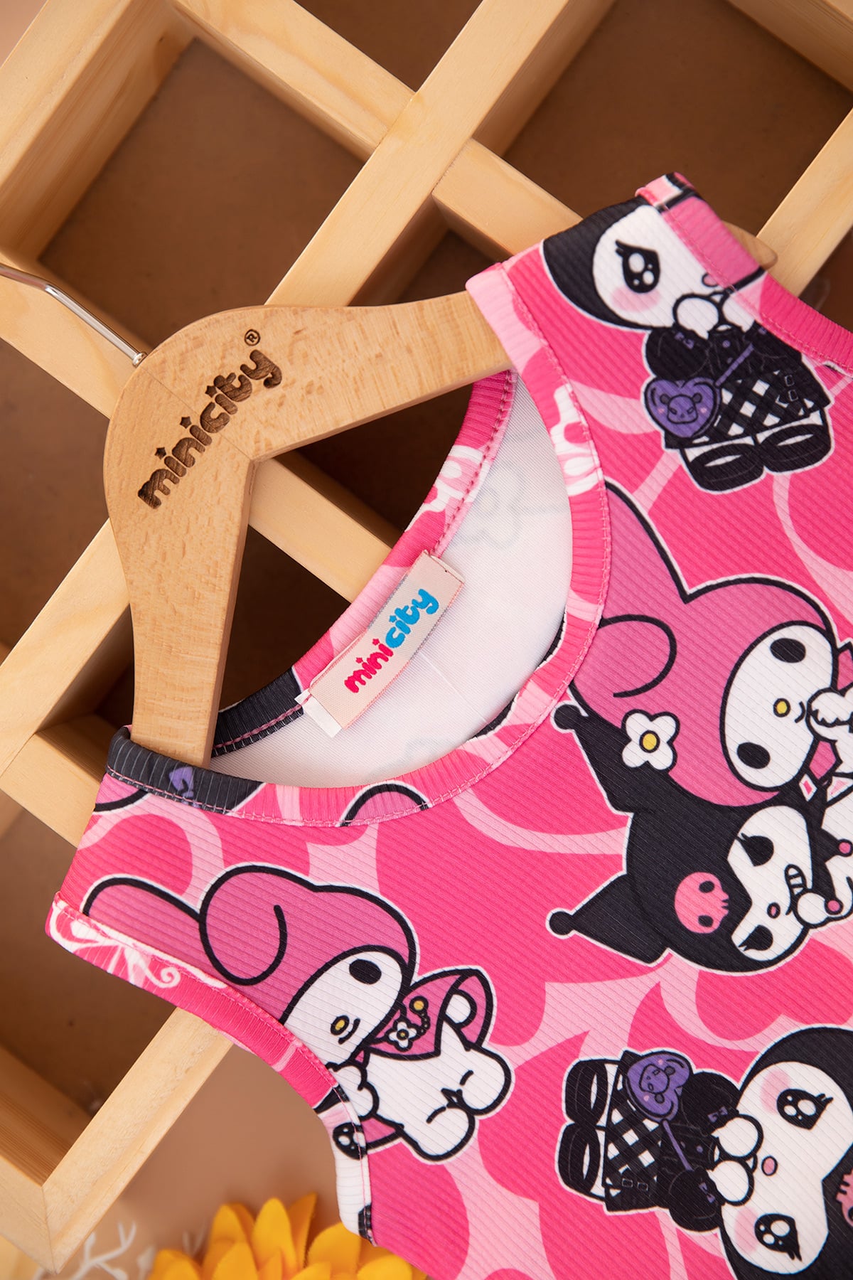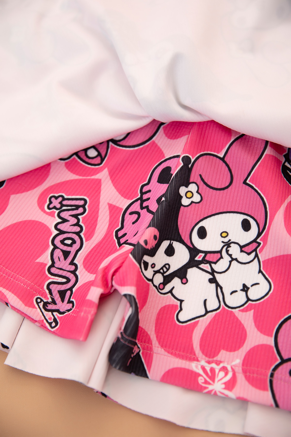 Kız Çocuk Baskılı Crop Badi Şort Etek Takım - 2775B (3-14 Yaş)