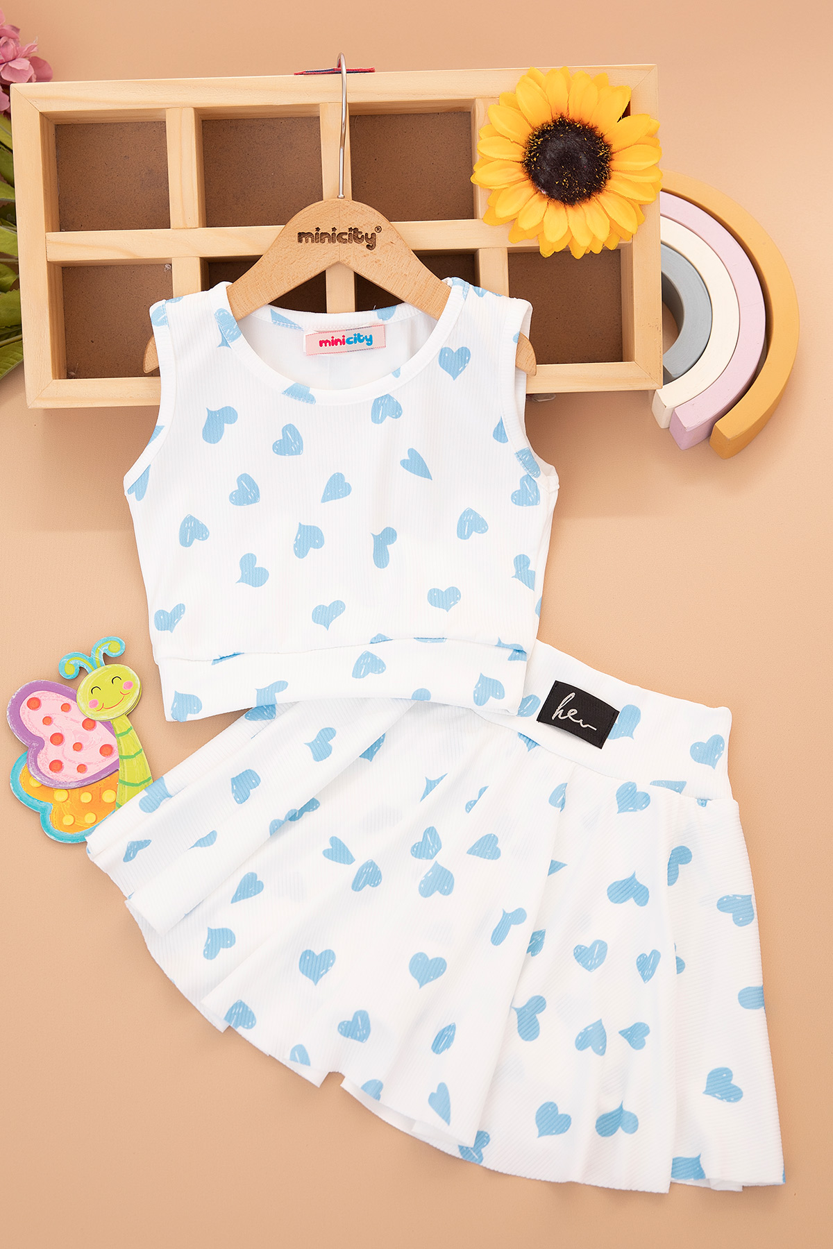 Kız Çocuk Baskılı Crop Badi Şort Etek Takım - 2775B (3-14 Yaş)