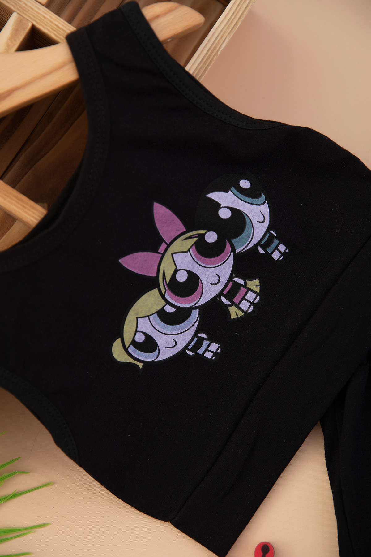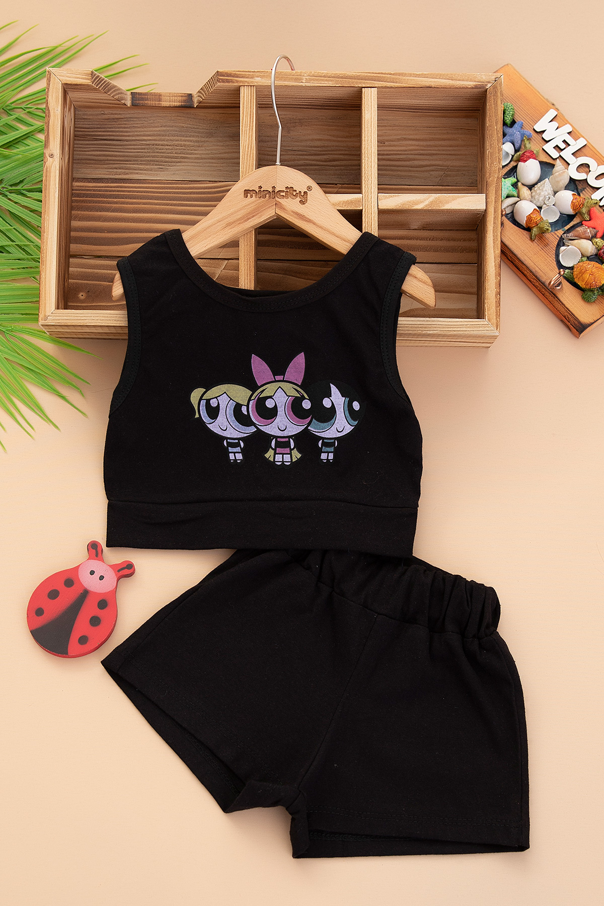 Kız Çocuk Baskılı Crop Badi Şortlu Takım - 031