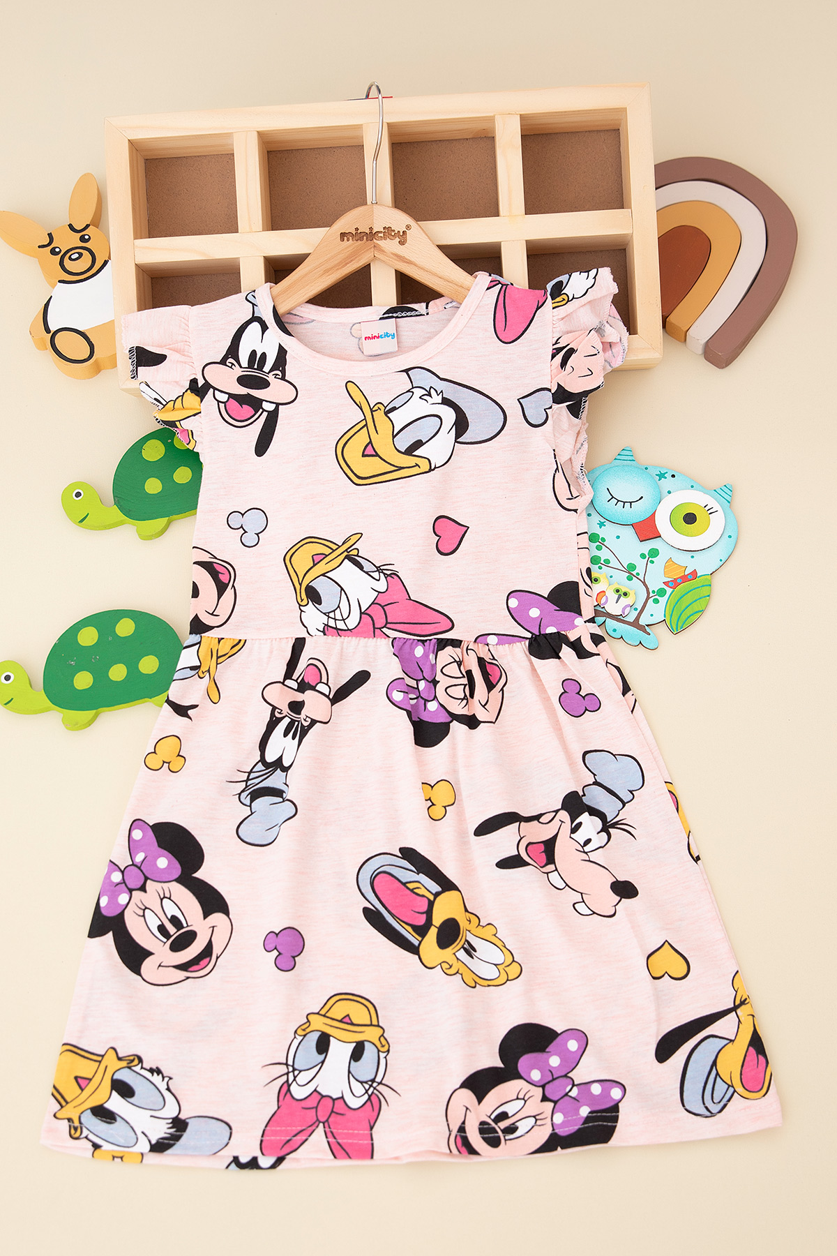 Kız Çocuk Baskılı Desenli Yarım Kol Elbise (7-11 Yaş)