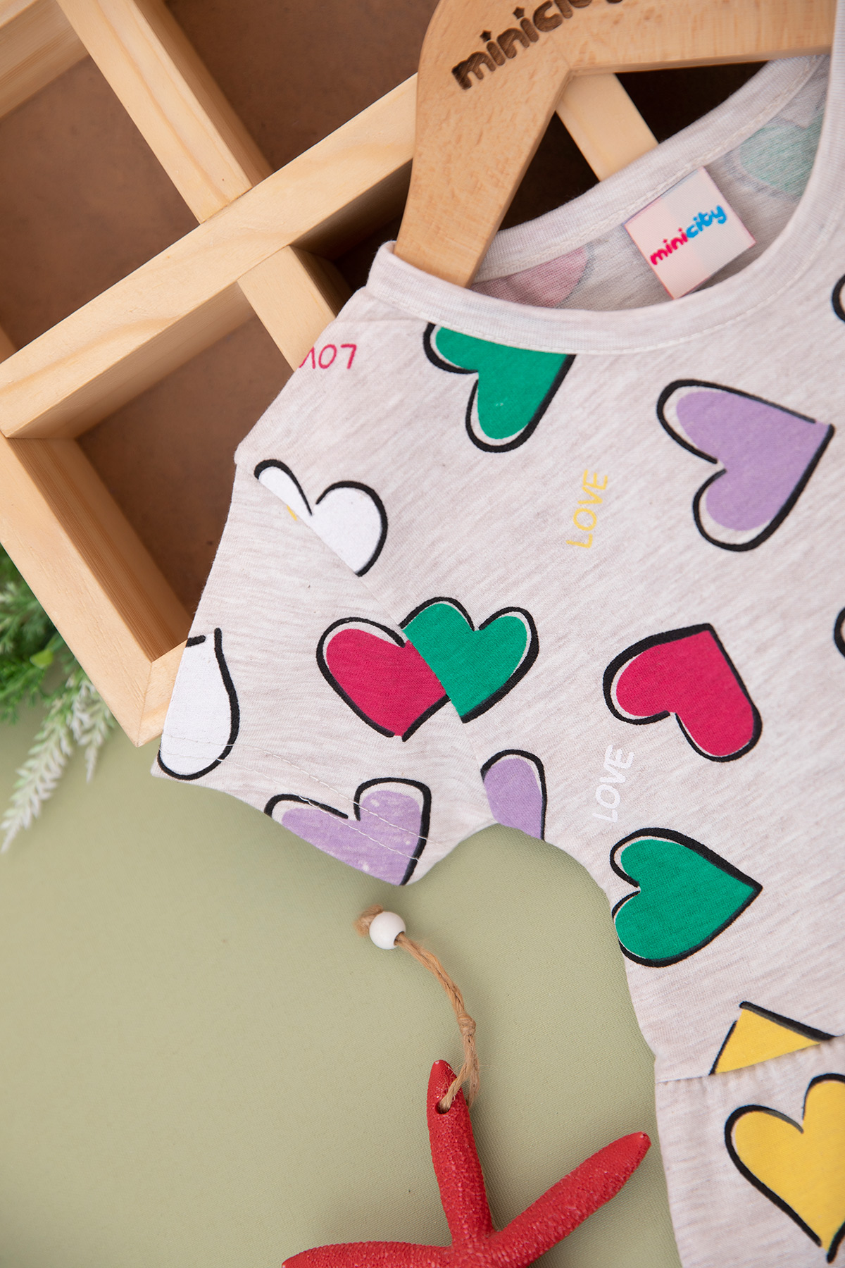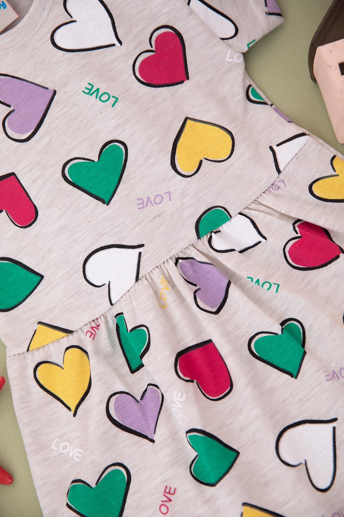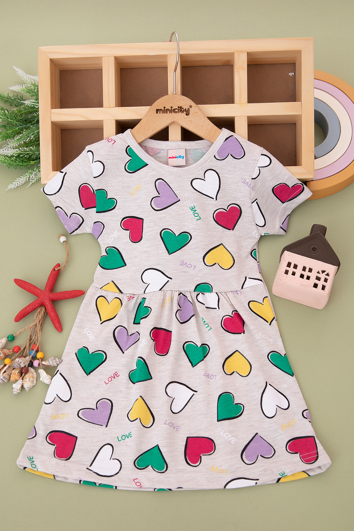 Kız Çocuk Baskılı Desenli Yarım Kol Elbise (7-11 Yaş)