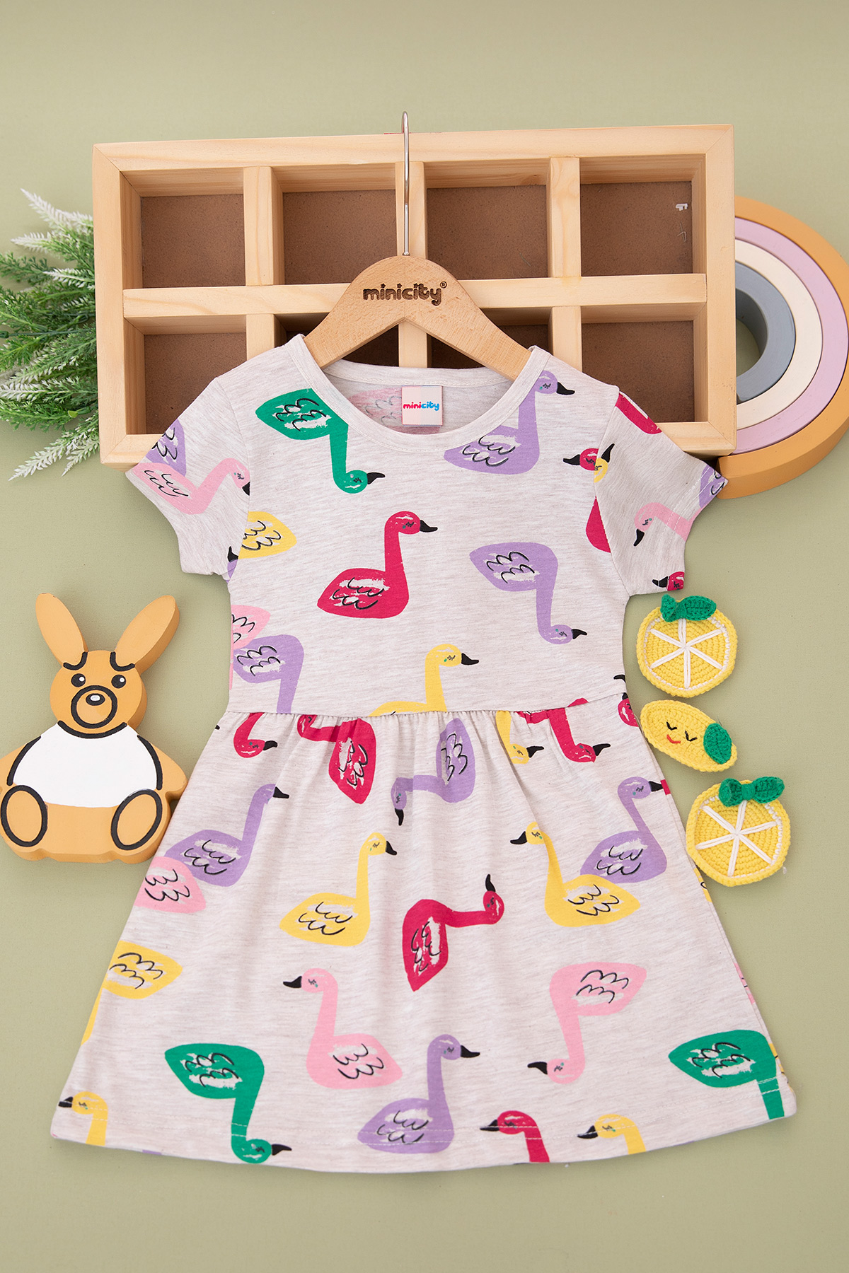 Kız Çocuk Baskılı Desenli Yarım Kol Elbise (7-11 Yaş)