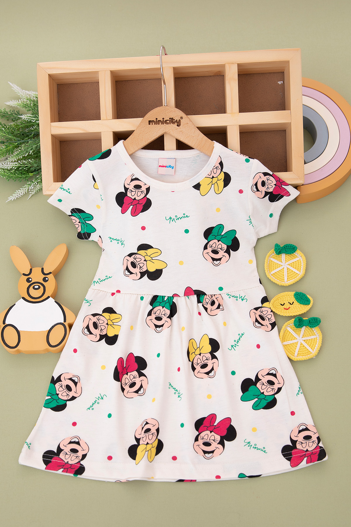 Kız Çocuk Baskılı Desenli Yarım Kol Elbise (7-11 Yaş)