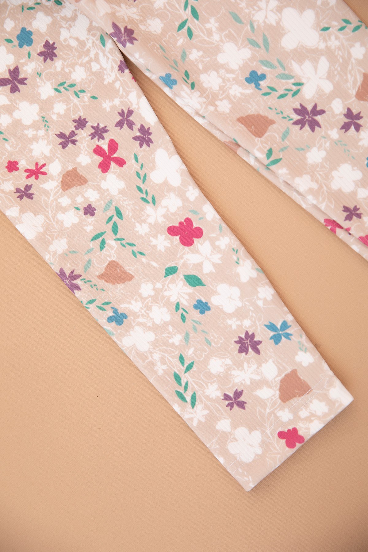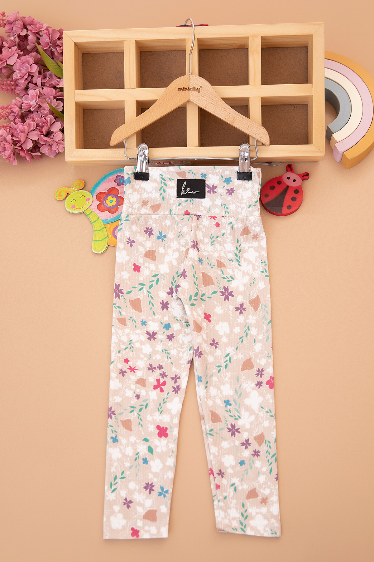 Kız Çocuk Baskılı Fitilli Viskon Tayt - 8001SB (3-12 Yaş)