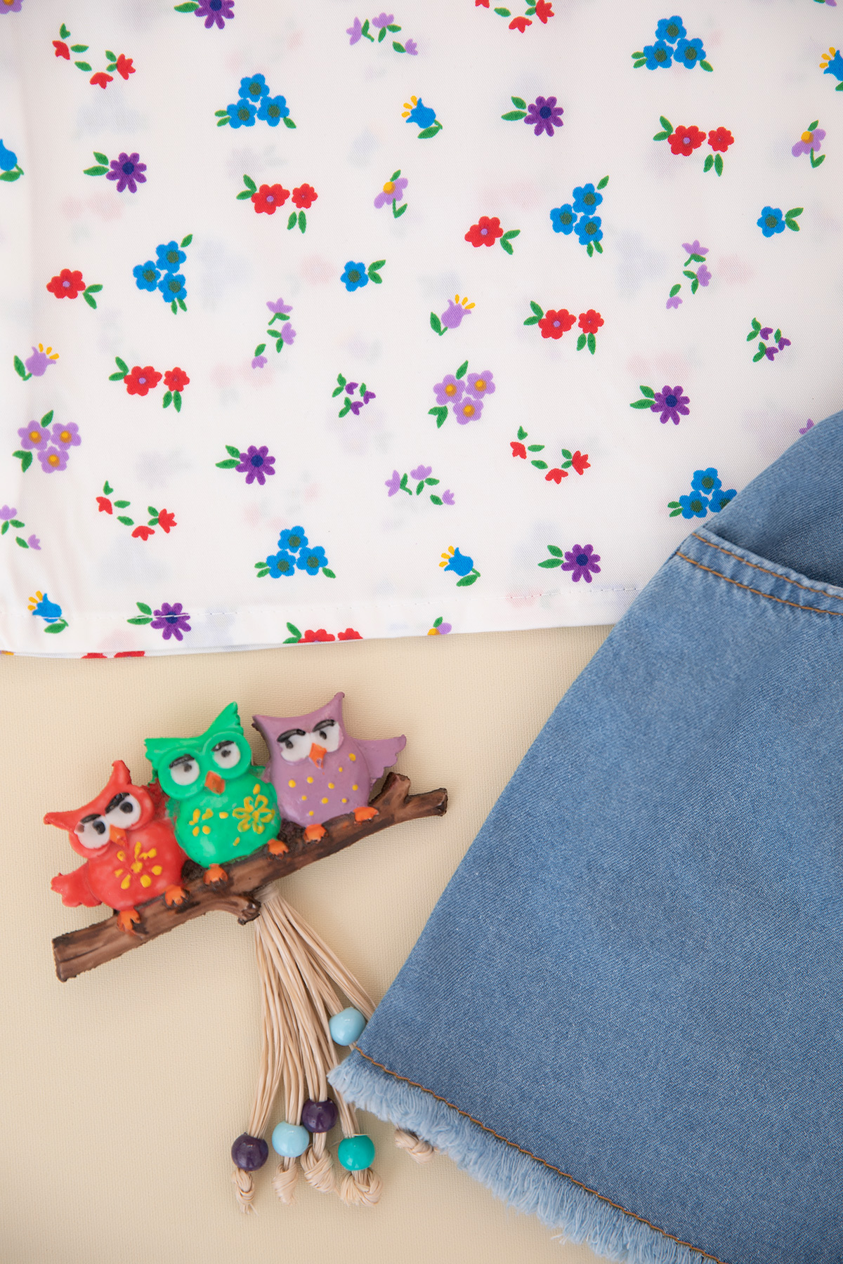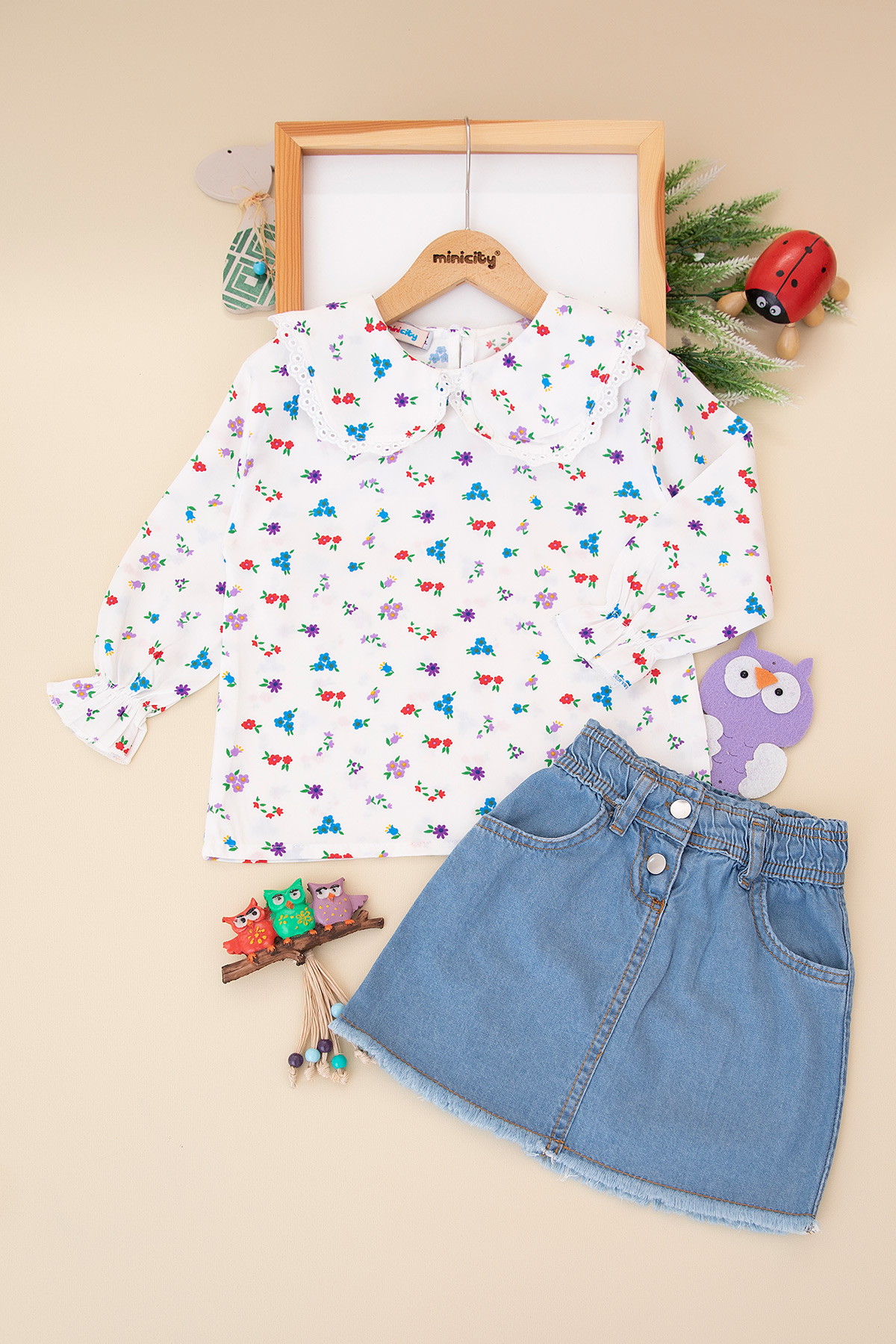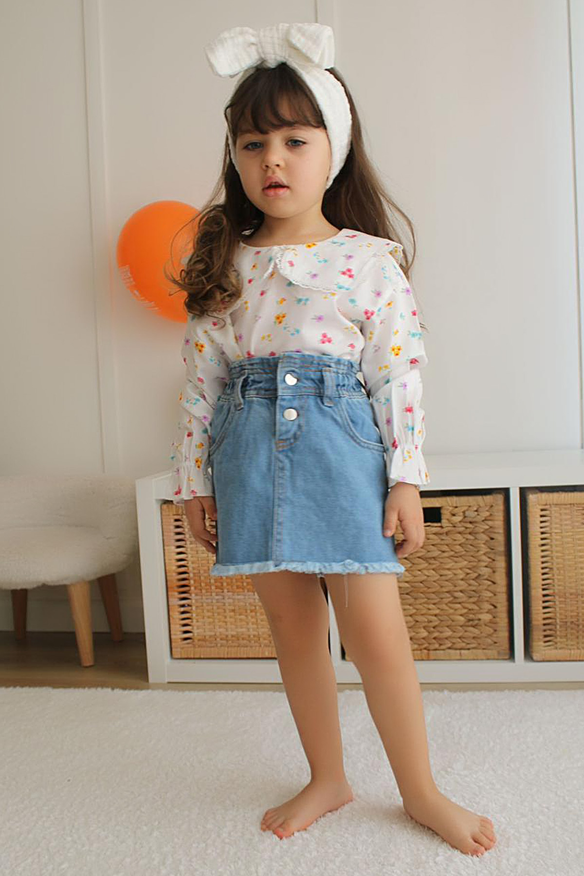 Kız Çocuk Baskılı Gömlek Kot Etek Takım - 3020 (2-8 Yaş)