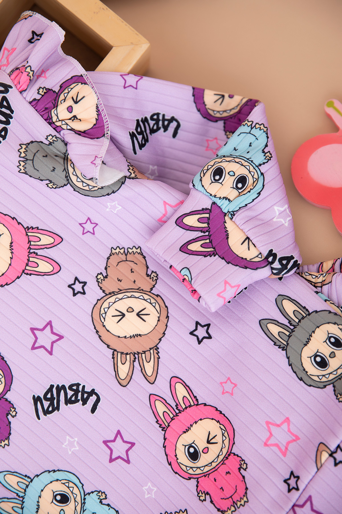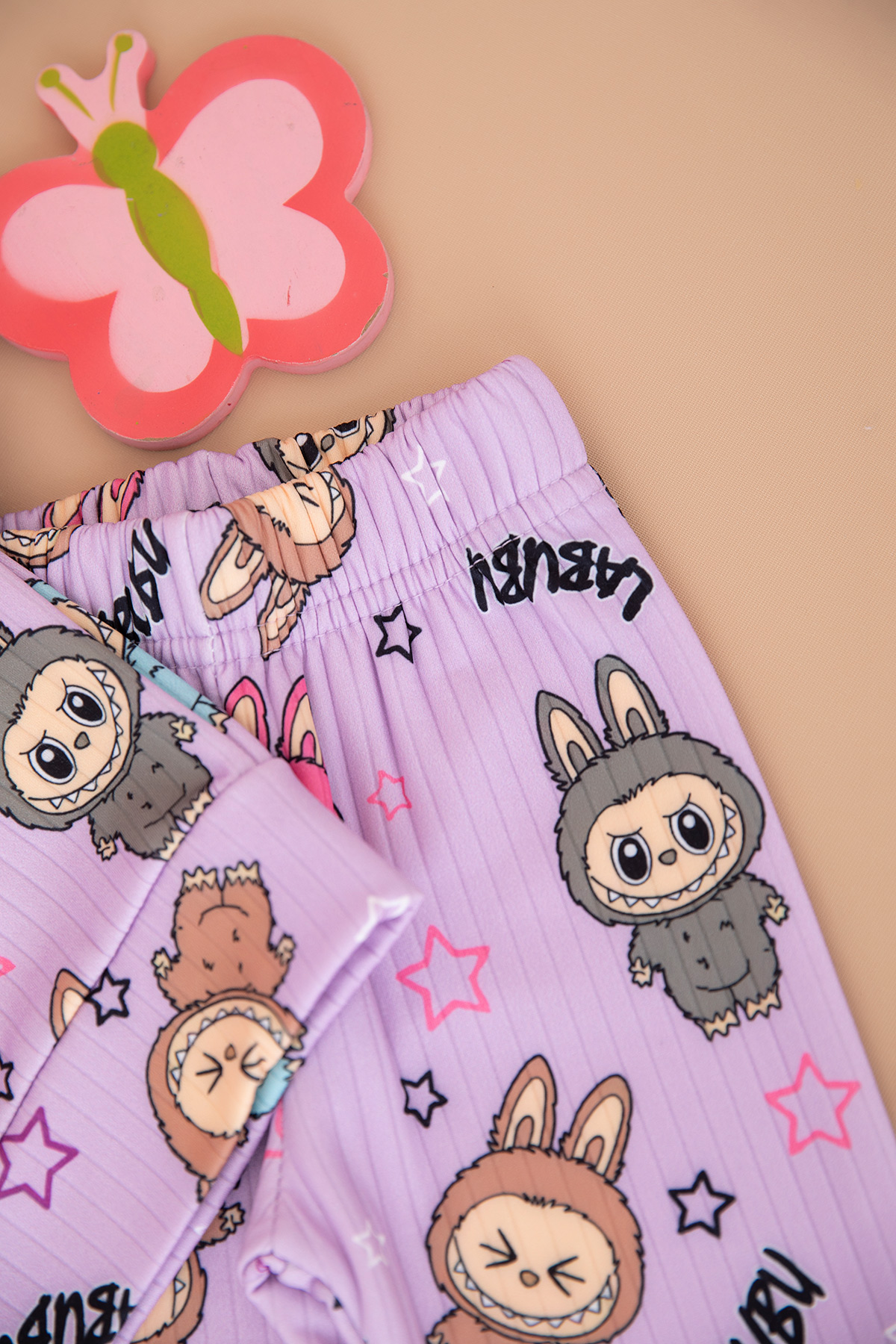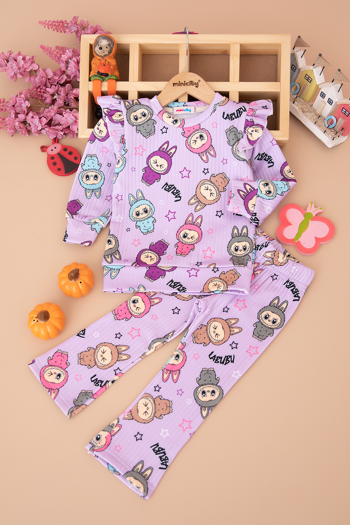 Kız Çocuk Baskılı Şardonlu Fırfırlı Takım (2-7 Yaş)