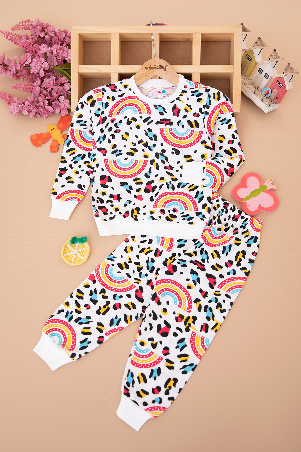 Kız Çocuk Baskılı Şardonlu Pijama Takımı (3-7 Yaş)