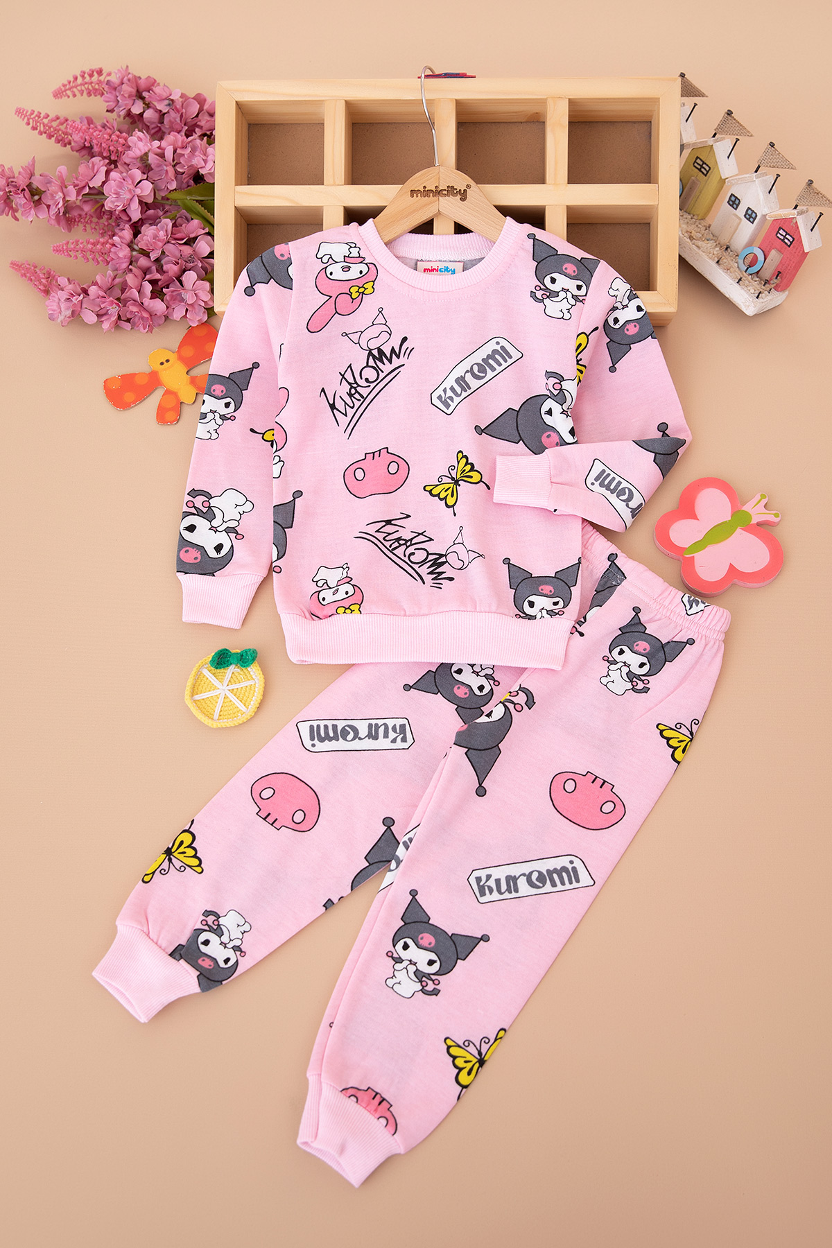 Kız Çocuk Baskılı Şardonlu Pijama Takımı (3-7 Yaş)