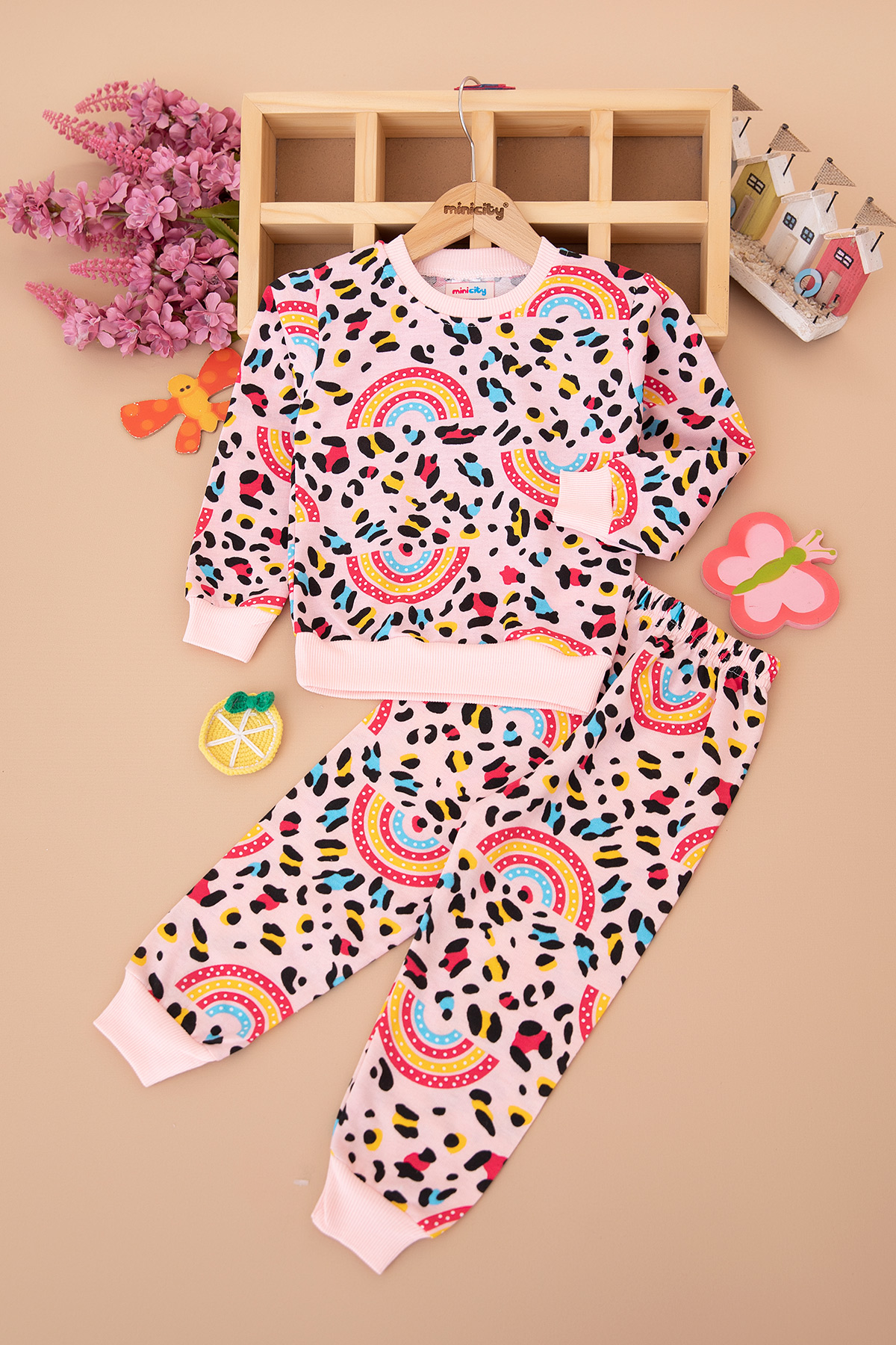 Kız Çocuk Baskılı Şardonlu Pijama Takımı (3-7 Yaş)