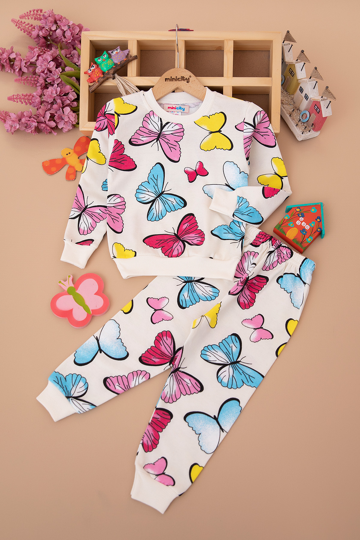 Kız Çocuk Baskılı Şardonlu Pijama Takımı (3-7 Yaş)