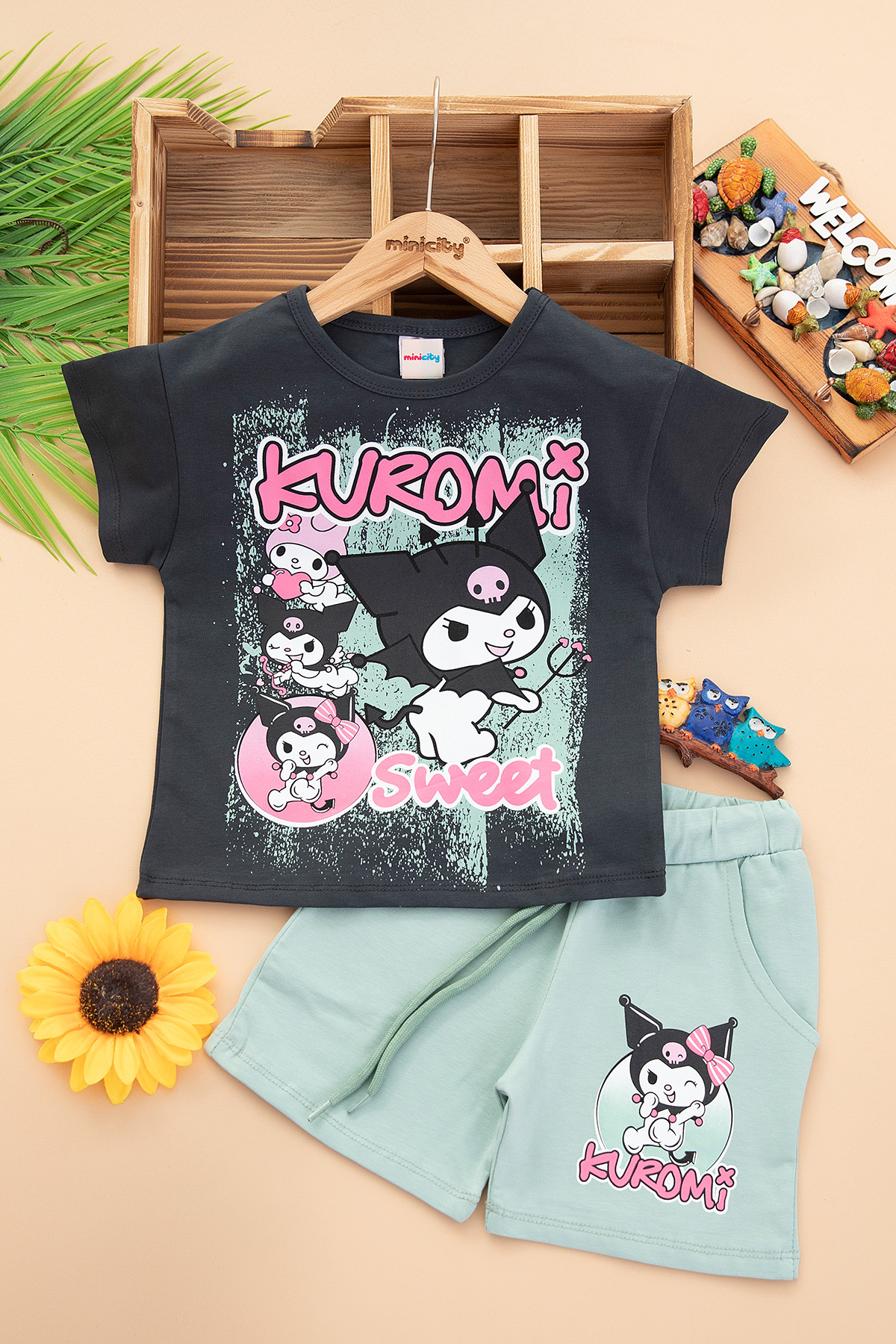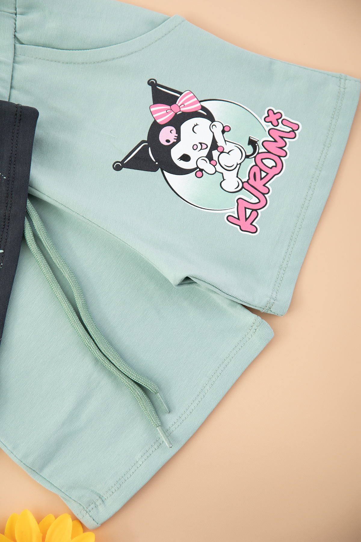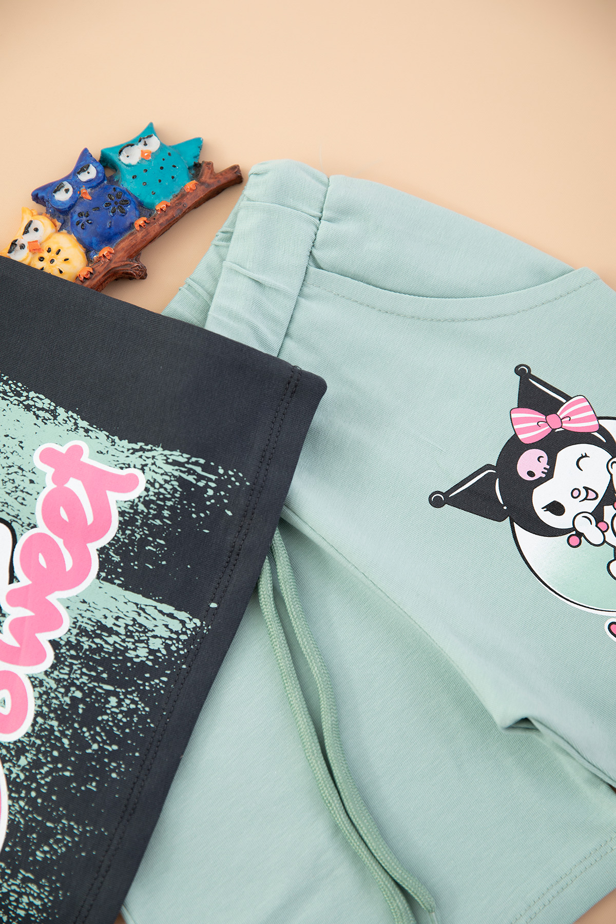 Kız Çocuk Baskılı Şortlu Takım - 7533 (3-10 Yaş)