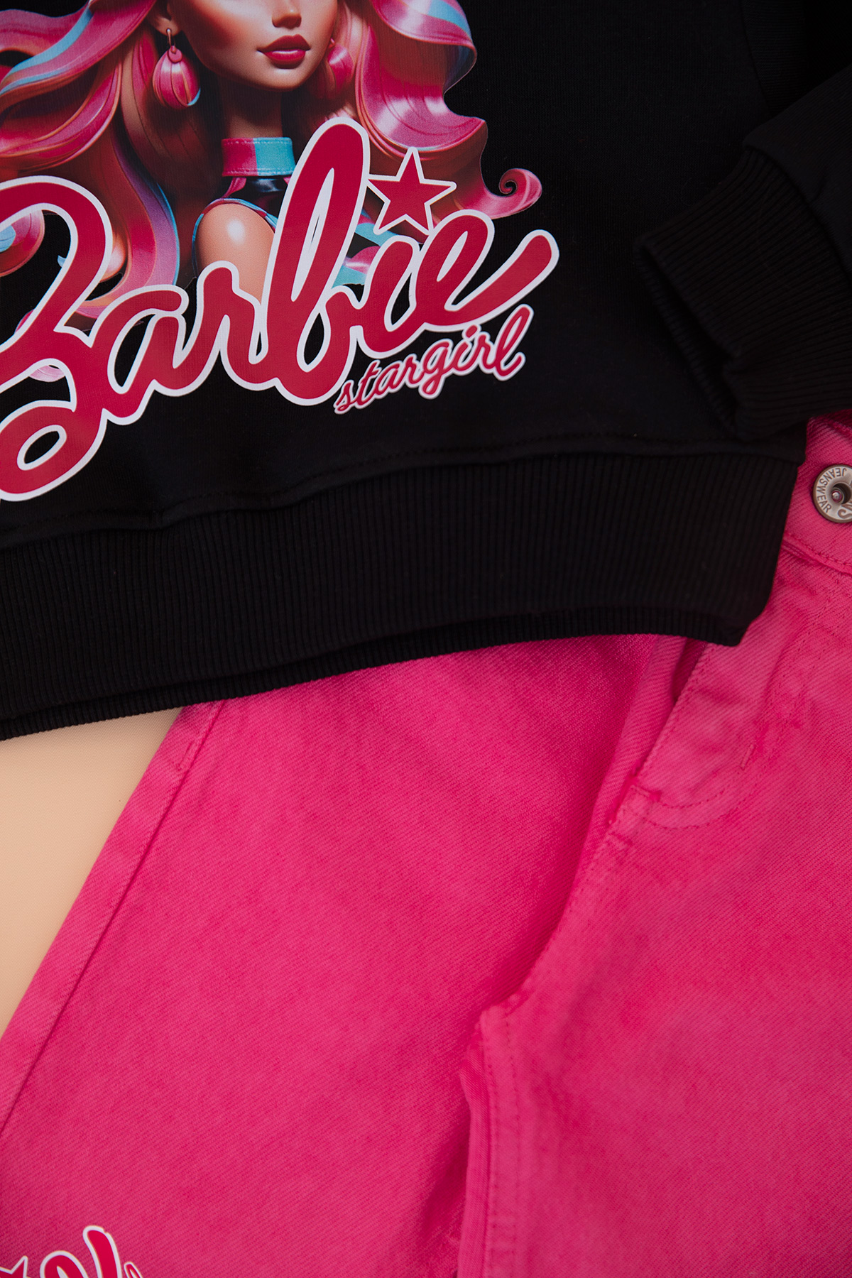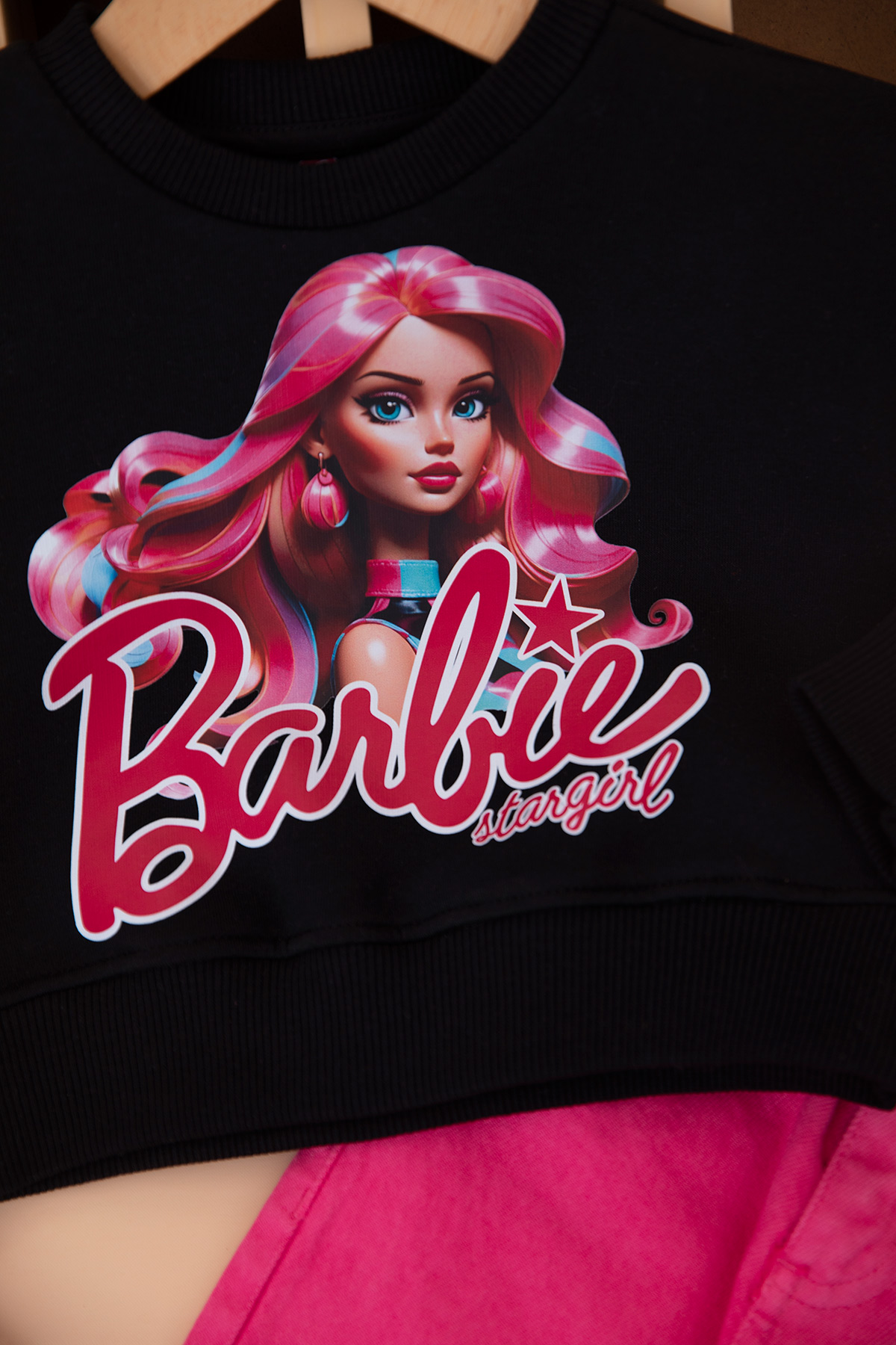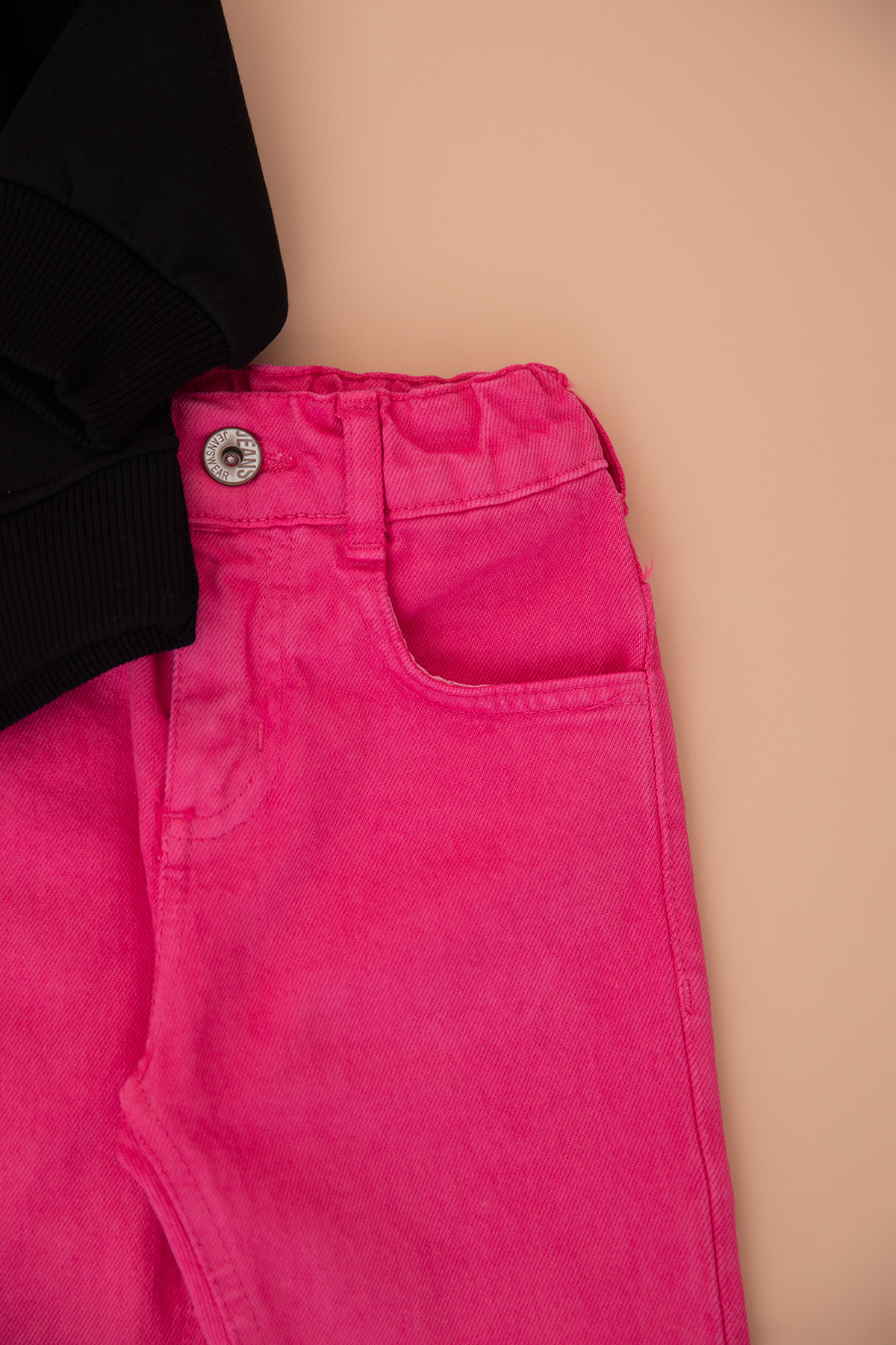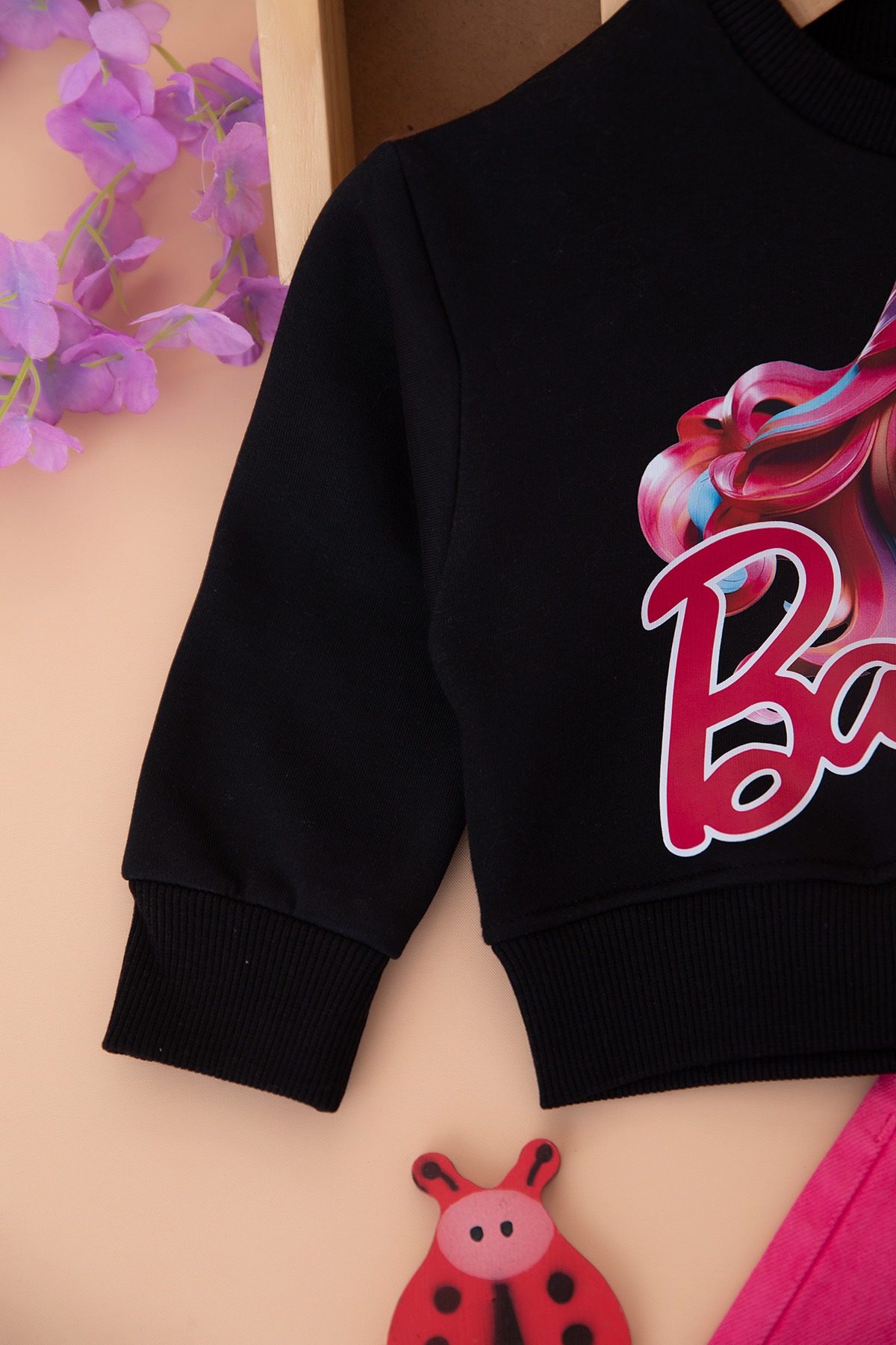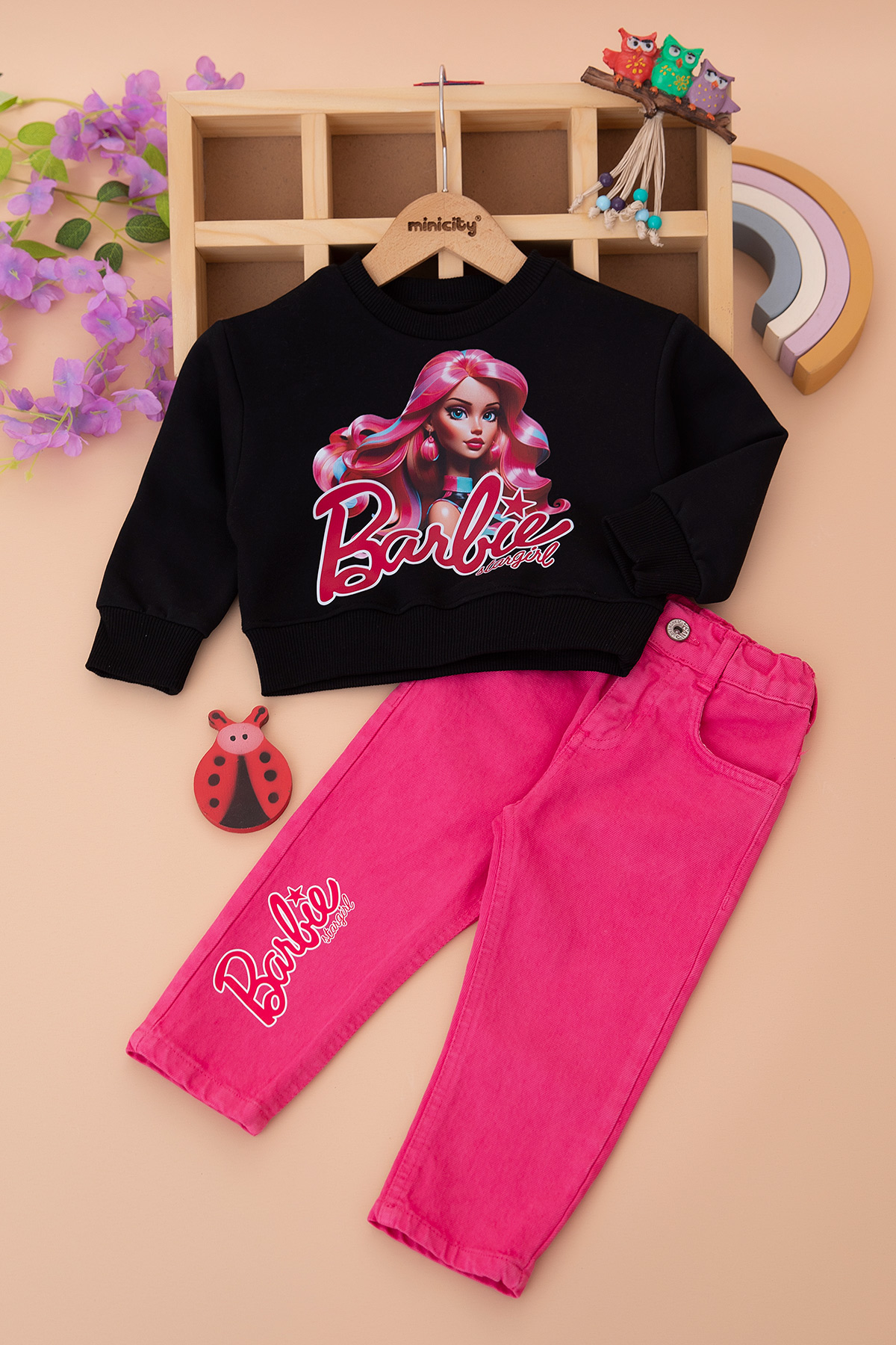 Kız Çocuk Baskılı Üçip Kanvas Pantolonlu Takım - 8202 (2-6 Yaş)