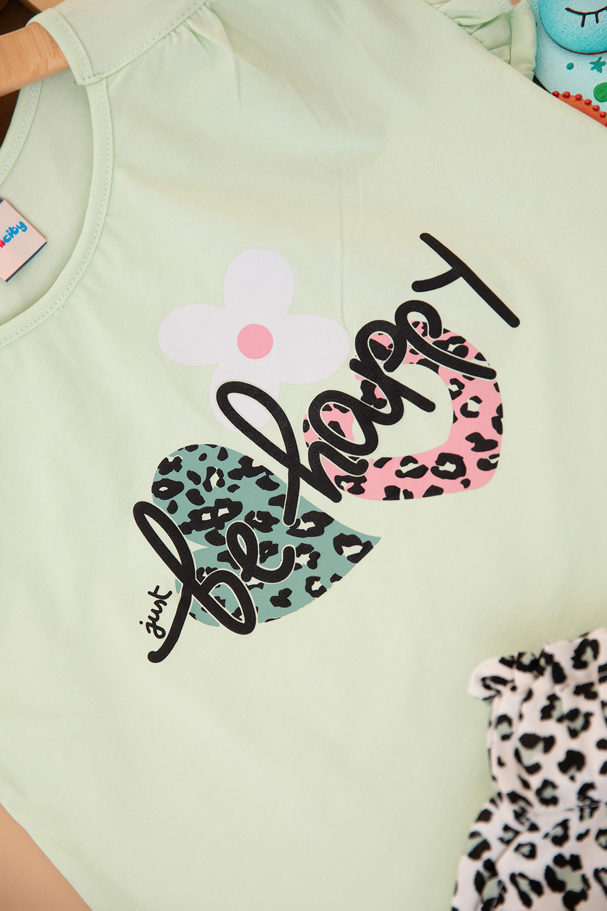 Kız Çocuk Be Happy Baskılı Şortlu Takım - 25588 (7-10 Yaş)