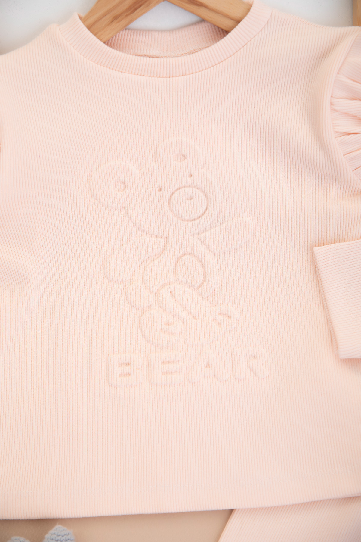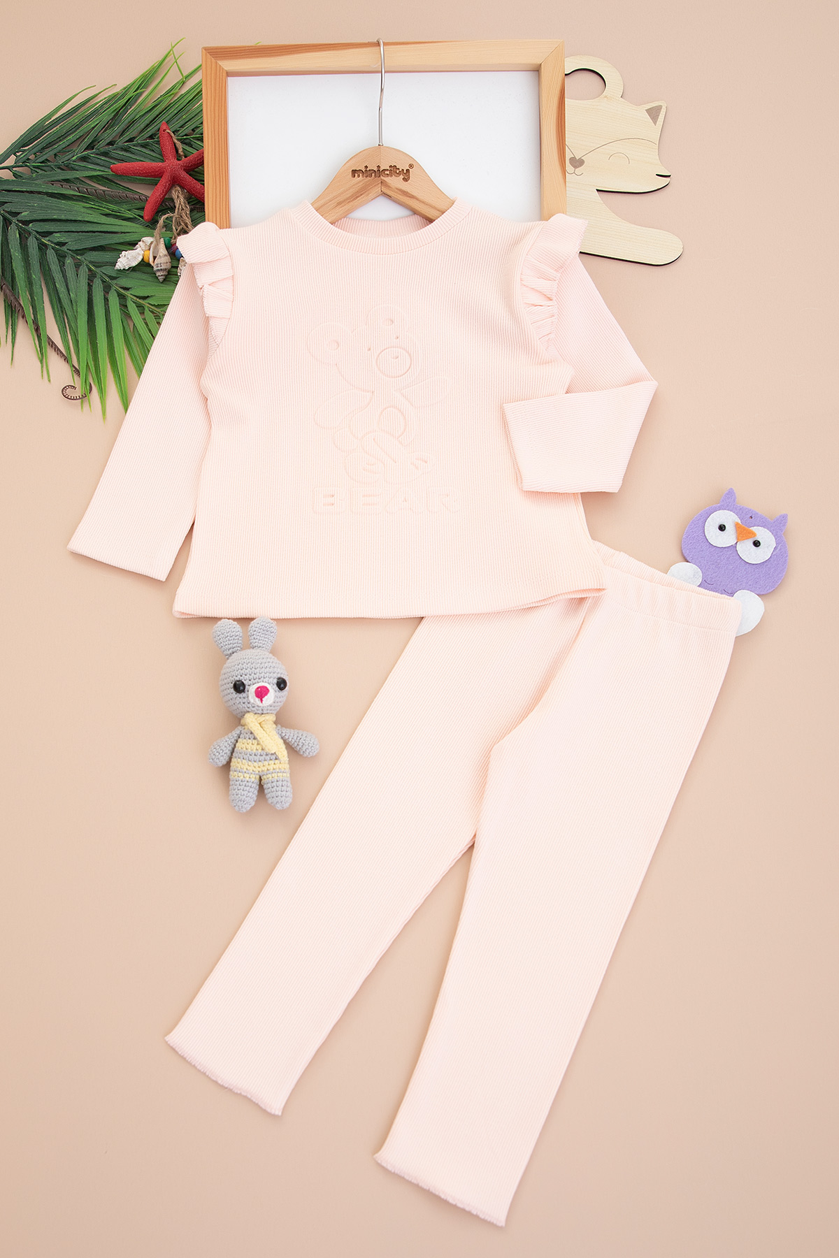 Kız Çocuk Bear Baskılı Fitilli Takım - 3408 (3-6 Yaş)